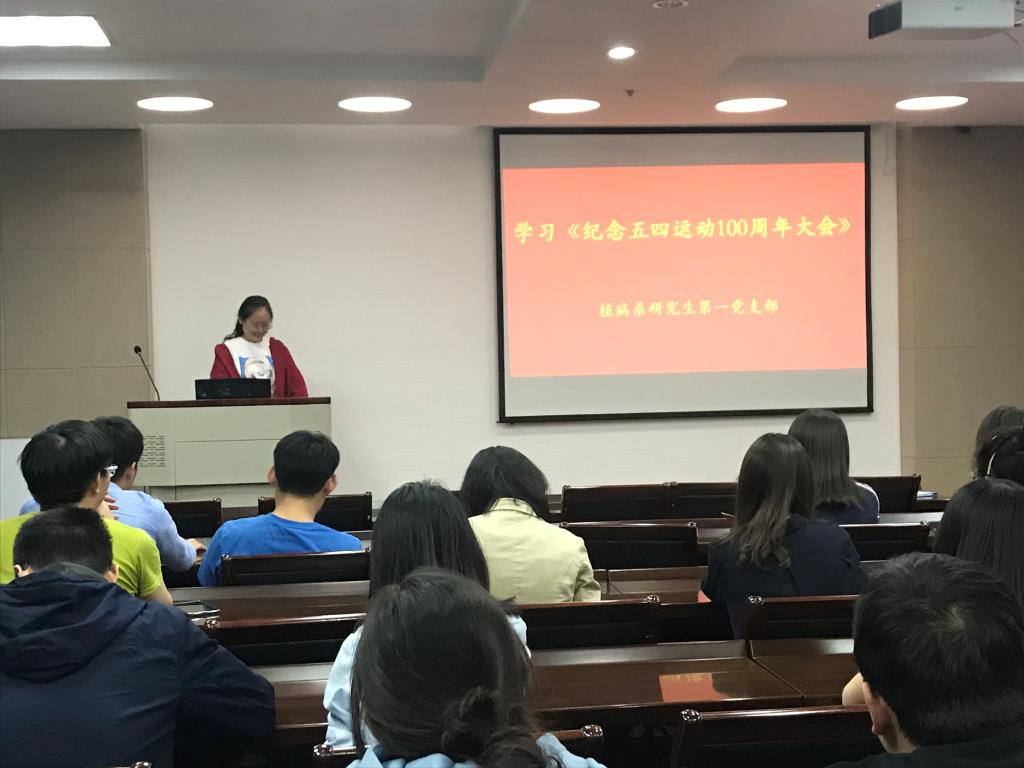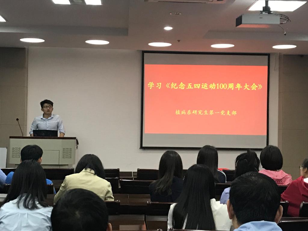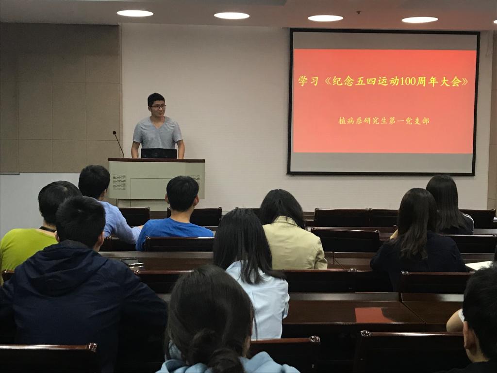 植病系研究生一支部为深入学习习近平总书记在“纪念五四运动100周年大会”上的讲话,于理科楼C305开展视频讲话学习活动,支部全体党员积极参与交流讨论。