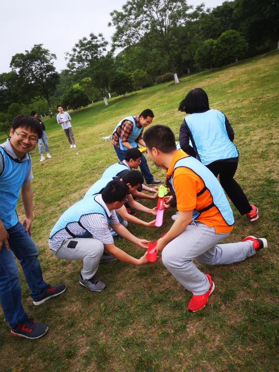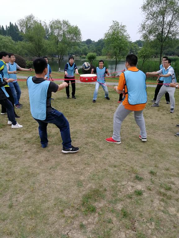 下午2点,红蓝两队在队长的带领下经过短暂的热身,随即投入到激烈的比赛当中。在“雷区取水”的游戏中,各位队员可谓绞尽脑汁,充分发挥“三个臭皮匠赛过诸葛亮”的团队合作精神,出谋划策,尽己所能为团队争荣誉。在“同心击鼓”这一环节,队员之间默契配合,相互鼓励,即使鞋子踢飞,赤脚也要上阵,可谓认真,敬业。最后一个环节要求每组队员协作、无缝衔接,共同在150秒的时间里完成一圈到底、一鼓作气、跳绳等六个项目,考验团队配合和计划、执行力,此环节充分调动了每个队员的积极性和参与性。