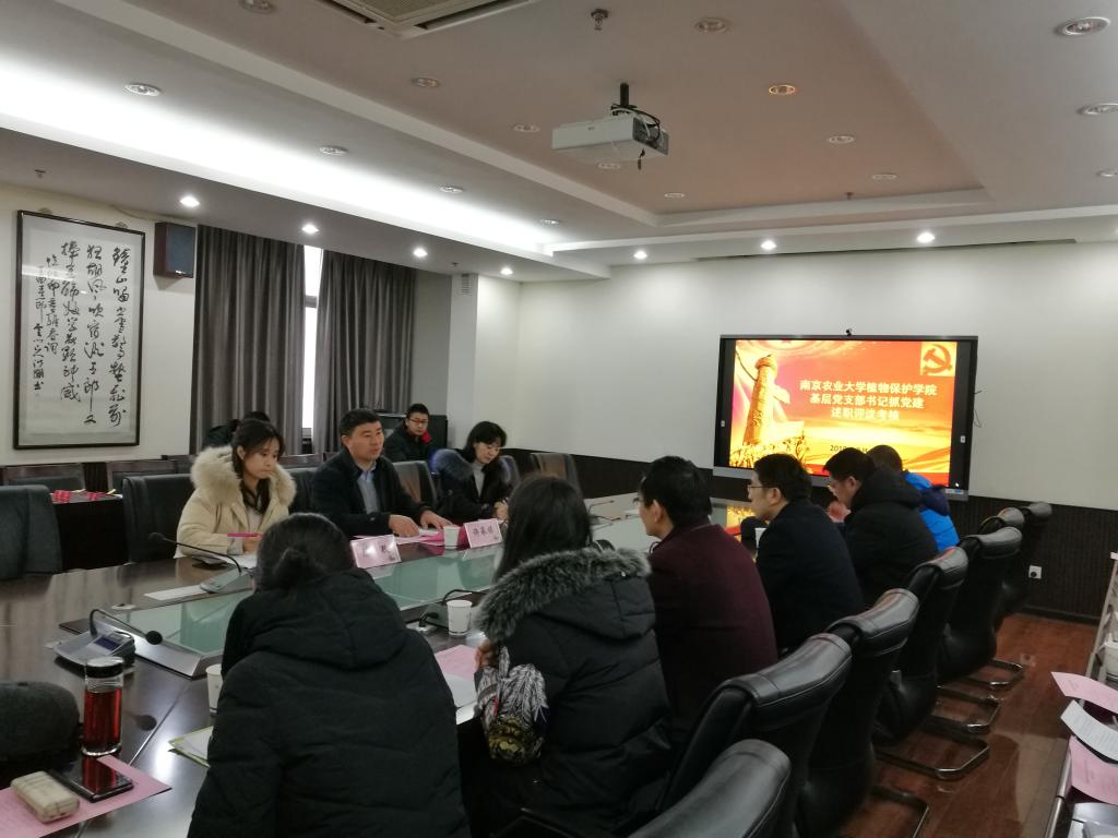 会上,植病系教工党支部、农药系教工党支部、行政教工党支部、植病系研究生一支部、昆虫系研究生一支部、农药系研究生一支部及植保本科生党支部7个支部书记进行PPT述职,分别阐述了工作思路、工作内容及工作成效。其中行政教工支部清晰明确的支部工作定位、植病系研究生一支部入围全国百个“研究生样板党支部”的建设过程、本科生党支部的党建立项研究,获得了考核组及各支部的一致认可。