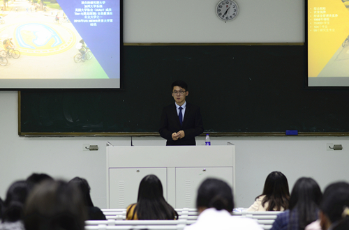 排名与学科优势,引起了同学们的关注。随后,他仔细讲解了加州大学戴维斯分校与南农合作的访学项目。访学将通过课程、讲座、参观、workshop等形式来加深大家对美国大学和农业、生命科学的了解,并提升同学们的英语水平。最后,罗承栋分享了自己出国的经历,鼓励大家“走出去”,突破意识的局限,将目光放眼于世界。