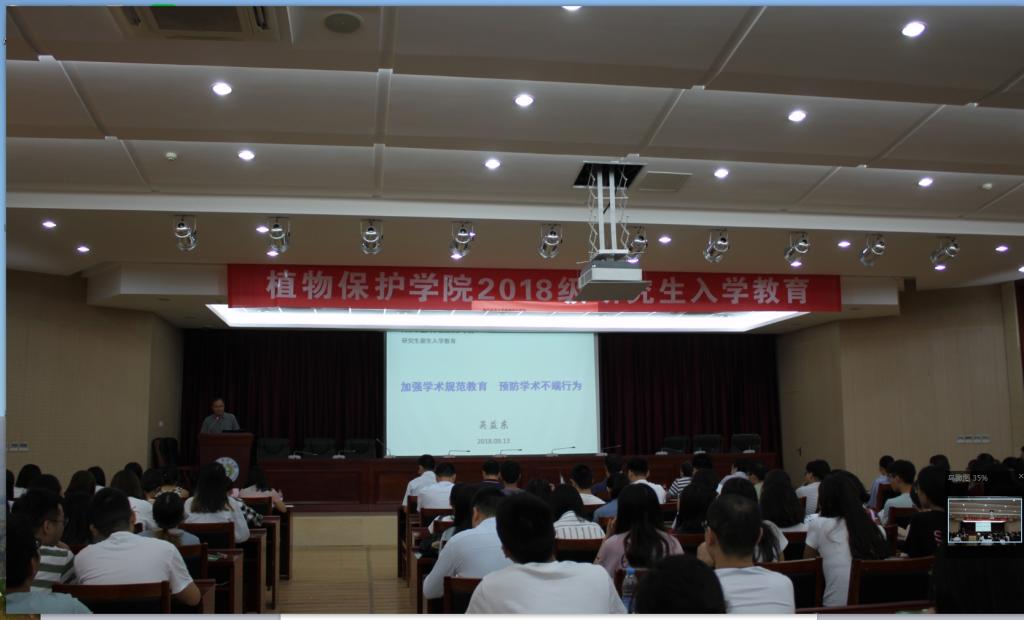 的悠久历史以及当下的杰出发展,增强同学们的认同感和荣誉感,激励新生在未来的科研工作中,通过自身的努力和智慧继续为南农植保增光添彩;其后,党委书记吴益东教授以“加强学术规范教育,预防学术不端行为”为主题对新生进行学术道德教育,列举了各类学术不端行为,并以“韩春雨事件”作为典型案例,敬告各位研究生新生“就算大环境不容乐观,也不能成为学术不端的借口”;最后,教师代表韩召军教授则向新生们传授了科学研究方法,其中包括如何选题、如何书写项目申请报告等干货,使听众受益匪浅。会议的第二阶段:由研究生秘书岳丽娜老师和研究生辅导员李子成老师,分别向新生解读研究生学制和培养计划,以及研究生行政工作机制,解决新生当下最关注的问题,帮助他们尽快融入研究生阶段的生活。