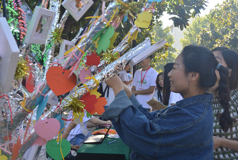 迎新活动的特色是充满希望与憧憬的树,小萌新们挑选着自己喜欢的卡片和彩笔,写下自己的心情,自己对未来的憧憬,自己的宏图大志……亲手挂在希望之树上,和父母一起在树下留下大学最初的美好印记。四年后,看看曾经稚嫩的自己,想着这四年的事情,亦是遇见美好!