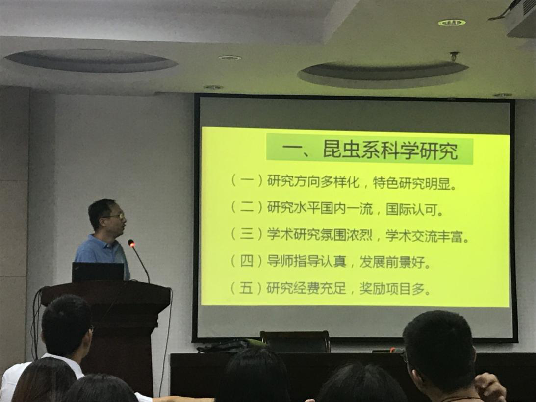、2019届深造(保研和考研)政策简介两项议程。首先由植物病理学系教授窦道龙、昆虫学系教授王备新、农药系教授高聪芬老师从不同的学科研究方向为大家进行了简单的介绍,突显出植保区块链游戏