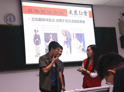 红十字会在主楼102为同学们开展一场急救知识讲座。