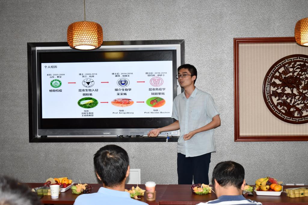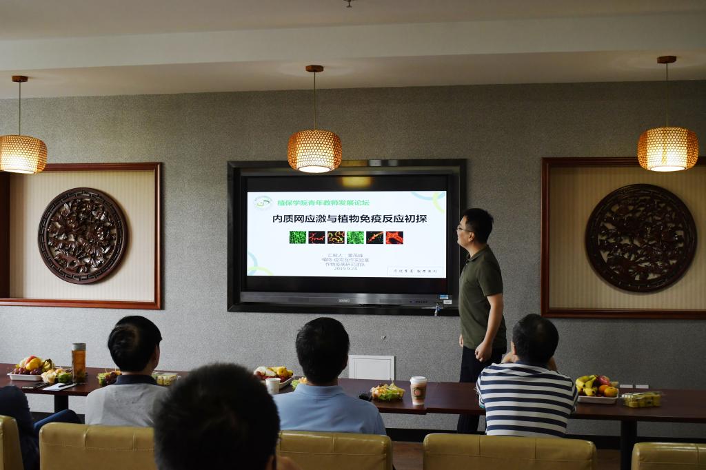 景茂峰副教授介绍了自己近期研究内容“内质网应激与植物免疫反应初探”,介绍了自己如何结合作物疫病团队的研究目标,整合团队和自身优势,依托团队制订未来长期的研究方向。
