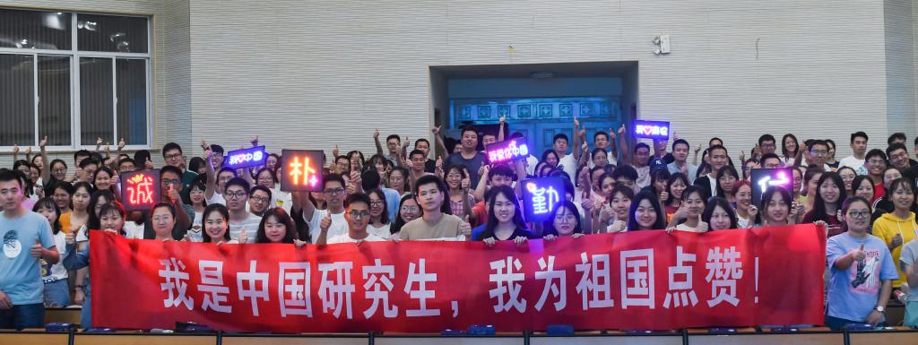 最后,2019级研究生新生开学典礼在对祖国的告白声中结束,他们齐声高喊“我是中国研究生,我为祖国点赞”,以此向新中国成立七十周年献礼。我们坚信他们会以更加饱满的热情投入到接下来的研究生生活中,为祖国繁荣昌盛的未来奉献自己的一份力量!