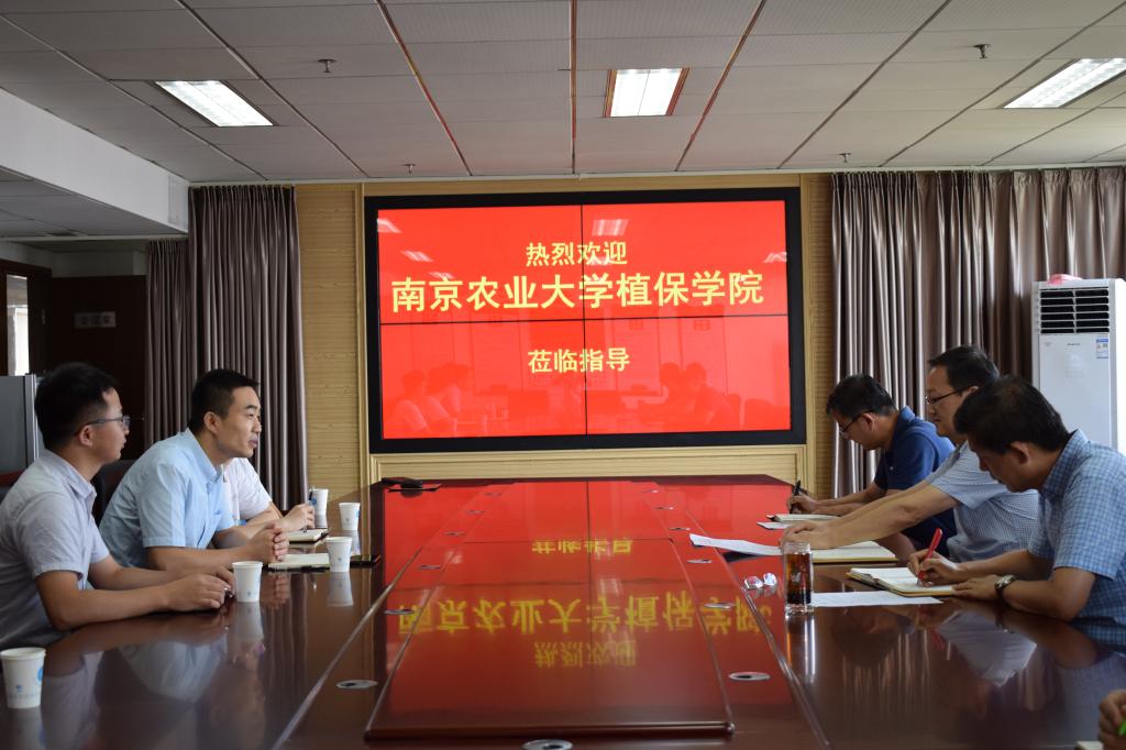 王兴亮一行与江苏省植保站田子华站长、王茂涛副站长和龚伟荣植检科科长等进行座谈。在座谈过程中,田站长和王副站长高度赞扬区块链游戏