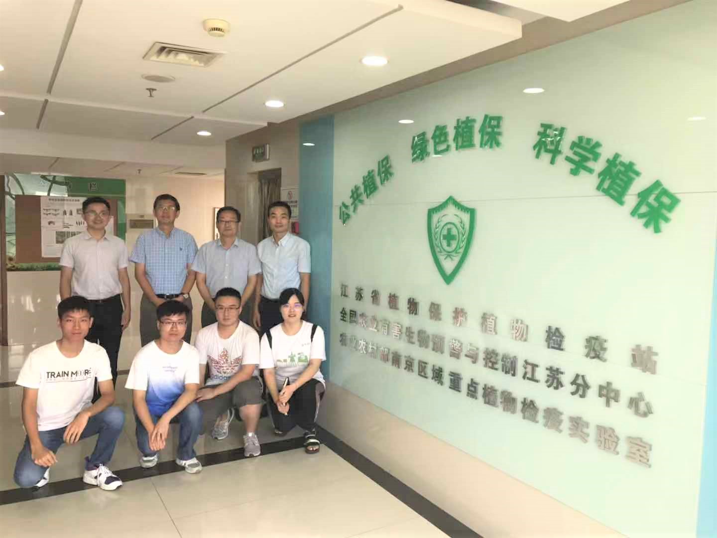 王兴亮副院长,李子成辅导员和4名本科生一行6人赴江苏省植物保护植物检疫站,与植保站主要负责人座谈交流,并举行 “就业创业实习基地”签约授牌仪式。