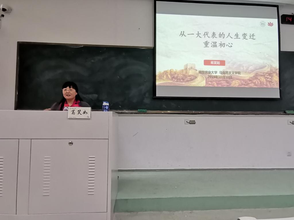 报告以“从一大代表的人生变迁重温初心”为主题,从《华严经》“初心为始,正觉为终”入手,紧紧围绕“初心”二字,带领同学们回顾中国共产党艰苦卓绝、成绩斐然的奋斗历程,让同学们切实感受先辈们坚持“为中国人民谋幸福,为中华民族谋复兴”的初心。随后,葛笑如以一大代表的人生变迁为例,具体阐述中共党员的责任与担当,并以“知变迁,温初心,悟人生”为结语,鼓励青年要爱国、立志、勤学、践行,为国家建设贡献自己的力量。