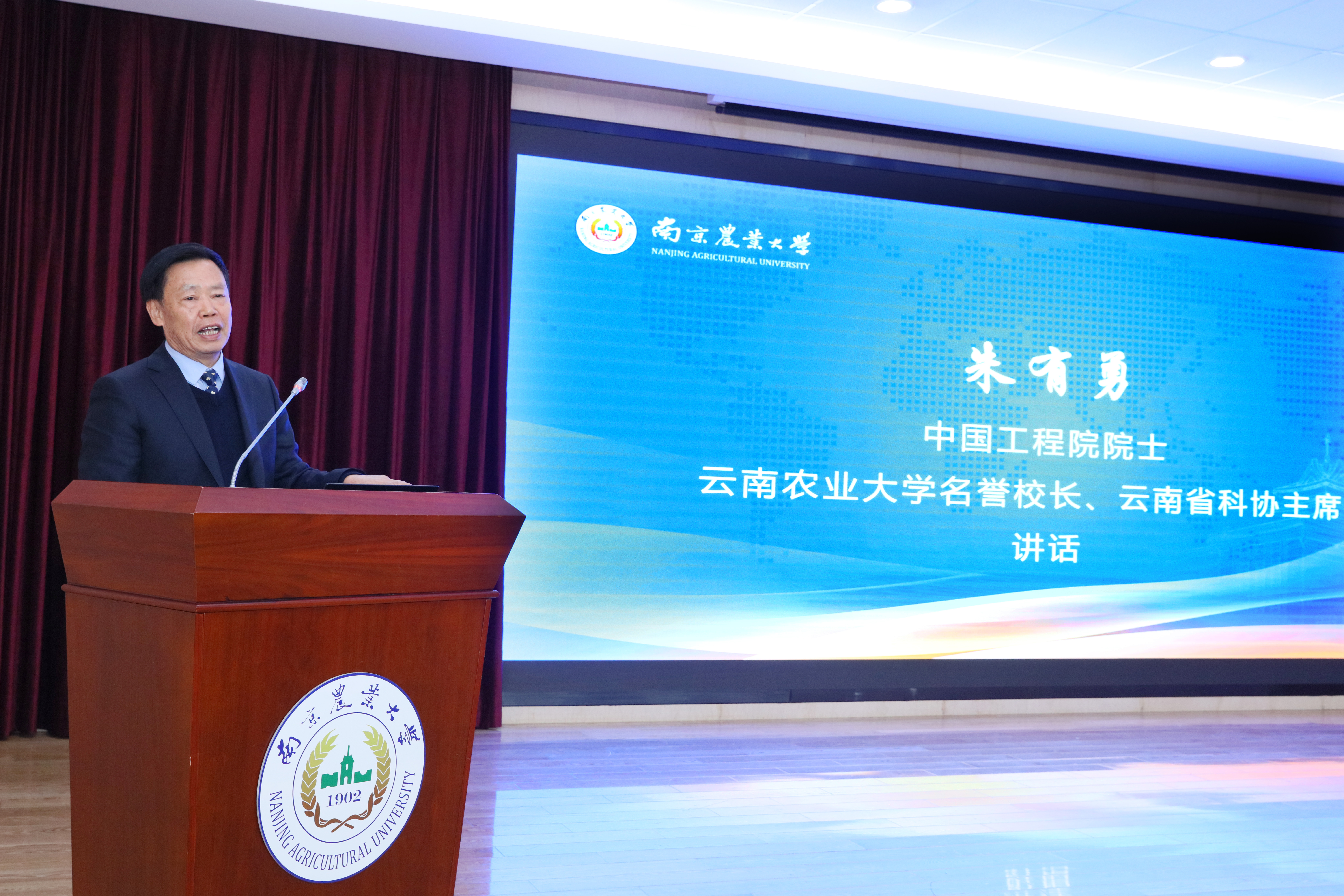 朱有勇院士作主题讲话。他指出创新是植保学科发展的根基,当前中国经济发展从数量转向高质量发展,农业、农产品的发展也从数量型向优质型、高质量型发展,植物保护将承担更为重要的责任。他强调,作为植保人要用植保的理念来设计、生产更优质的农产品,以满足全国人民的需求,并讲述了自己在农村一线利用生物多样性“相生相克”和“生境耦合”原理,指导云南农民种植林下有机中药、冬季优质马铃薯,帮助其脱贫致富的故事。他表示,自己干了一辈子植保,一直扎根农业农村基层,他希望同学们从新的角度思考研究现代植保,通过先进的生物技术培育更优质的作物品种,用生态学的理念实现农业的高质量、绿色发展,推动植保在农业领域取得更大成绩。