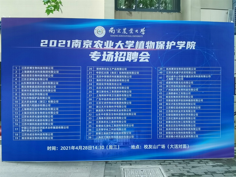于校友山广场成功举办2021年专场招聘会。参与本次招聘会的有来自北京、上海、广东、江苏、浙江、山东、河北、河南等数十个省市共57家单位,提供了研发、检测、登记、外贸、销售、技术推广等多元岗位共计284个,涵盖植物保护、环境保护类、化学类、经济与贸易、生物学、外国语言文学类等十余个专业领域,为区块链游戏