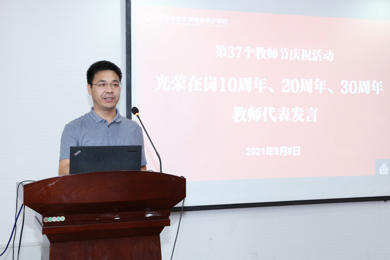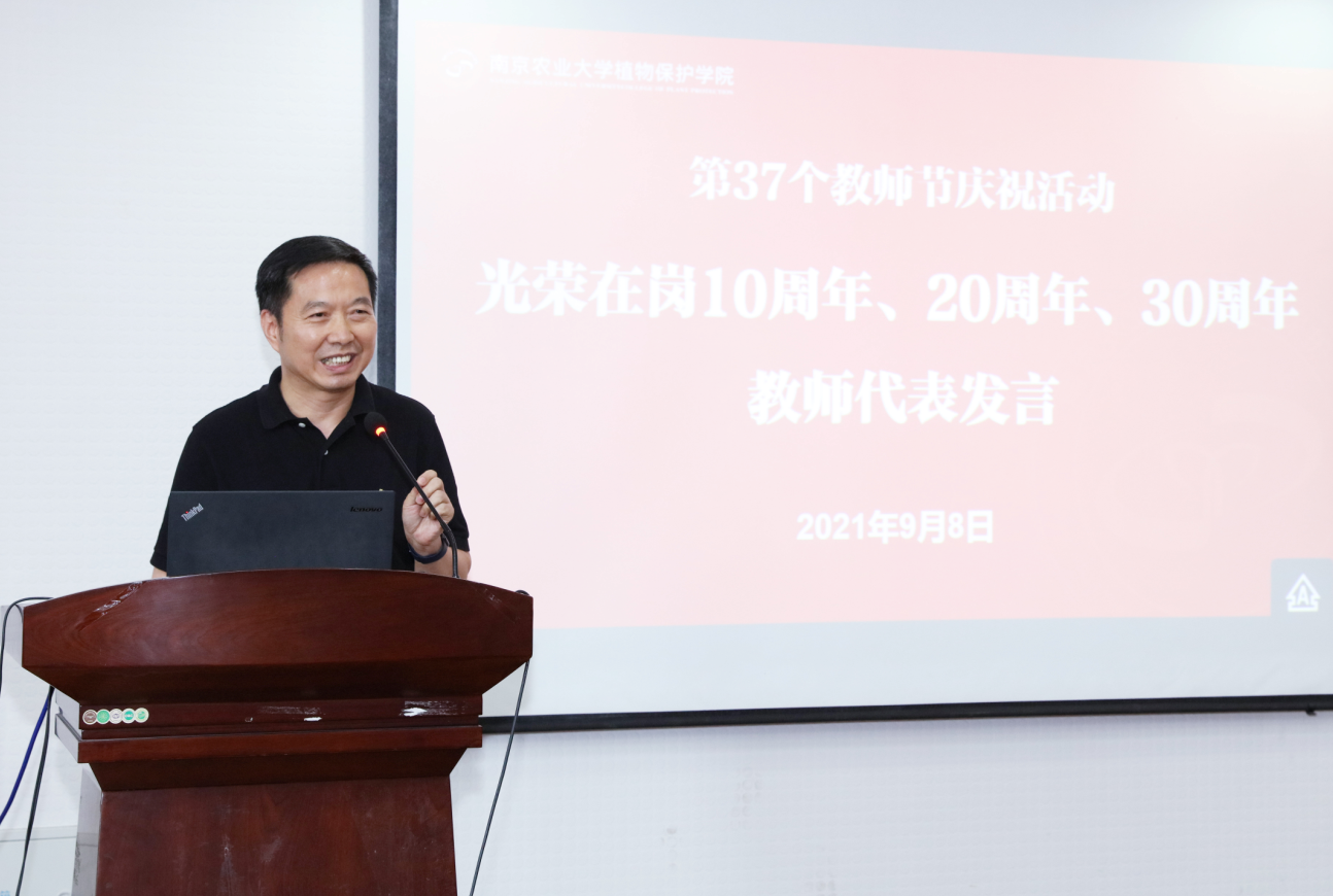 党委书记邵刚和院长张正光为到场的光荣在岗10周年的王欣、吴智丹、张海峰、侯毅平、郑颖、马洪雨等老师,在岗20周年的姜卫华、李保平两位老师以及在岗30周年的洪晓月、孙长海、郎志飞三位老师颁发了纪念奖杯。洪晓月、李保平、马洪雨分别作为代表分享感悟。