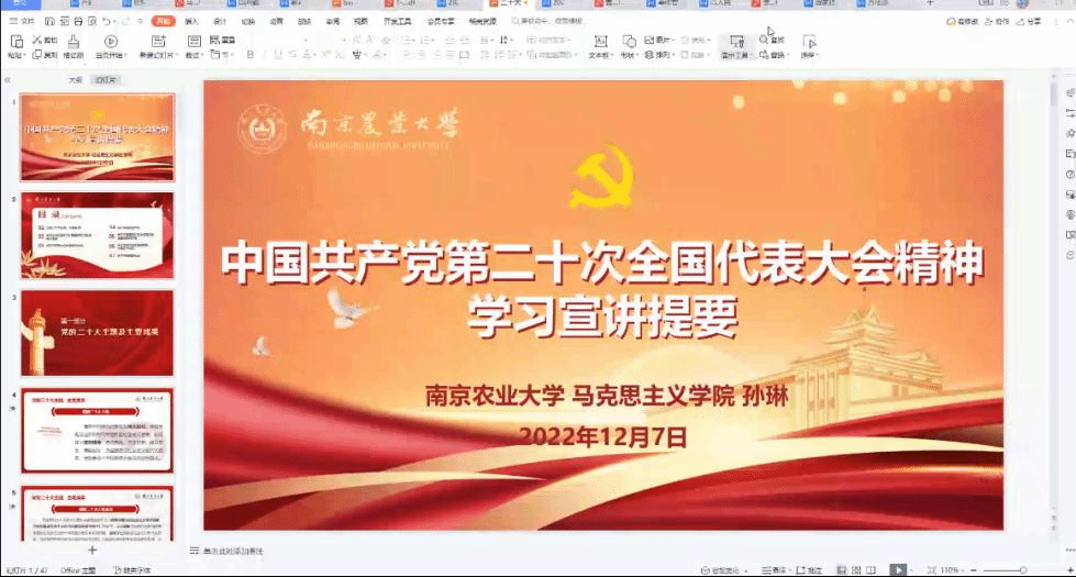 将有序安排覆盖教职工、学生等各层面的学习活动。三是要切实将学习成果转化为发展动力,要以党的二十大精神为指引,坚持学思用贯通、知信行统一,坚持以立德树人为根本,以强农兴农为己任,培养德智体美劳全面发展的社会主义建设者和接班人,为全面建成社会主义现代化强国凝聚思想,贡献力量。