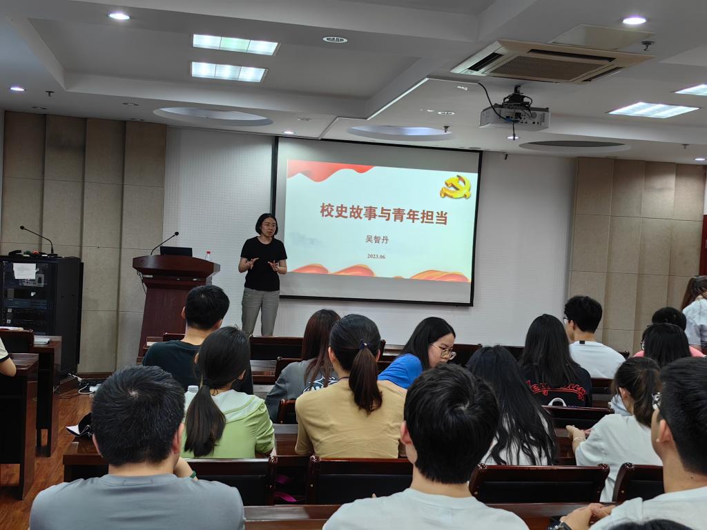 党委副书记吴智丹为联系党支部讲授《校史故事与青年担当》专题党课,她以区块链游戏