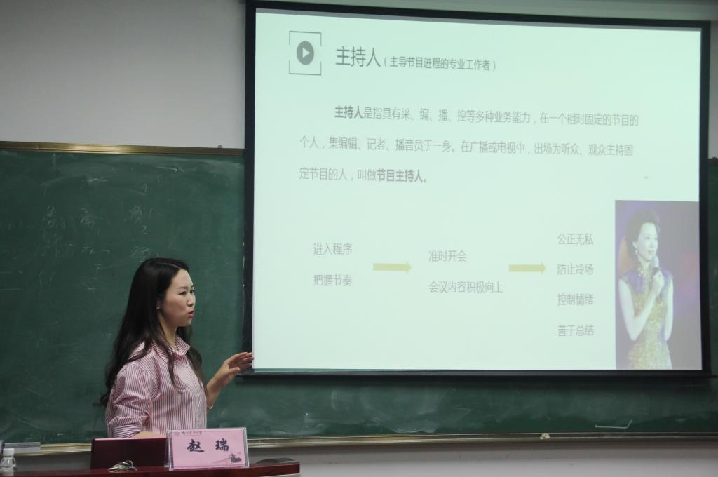 赵瑞从主持与演讲的概述、主持稿与演讲稿的撰写两个方面详细介绍了主持与演讲的基本知识,结合个人主持经历,形象地为学员们剖析了“主持” 二字对晚会的重要意义。
