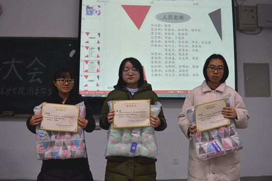 大会开始前,投影屏幕上放出了学生会各部门成员的个人介绍,引发了阵阵欢笑。大会开始,欧阳雪与大家回顾了各部门一年来的付出和成果,对学生会全体同学表示了感谢。随后,欧阳雪宣读了本学期学生会优秀干事与志愿者名单,主席团成员和部长为获奖同学颁奖。之后的抽奖环节中,几位幸运的同学得到了资环复印室VIP卡。游戏环节里,同学们也是欢笑不断,击鼓传花,你画我猜;在一轮轮游戏过后,同学们不仅拿到了小零食奖品,彼此之间也变得亲近起来。
