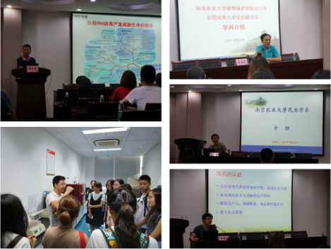 植物病理学系陶小荣教授受邀作植物病毒学方向专题报告。植物病理学系窦道龙教授、昆虫学系洪晓月教授、农药科学系华修德副教授作学科及实验室介绍,并与学生交流互动。公共实验中心马洪雨副教授带领学生参观实验室,并作详细讲解。