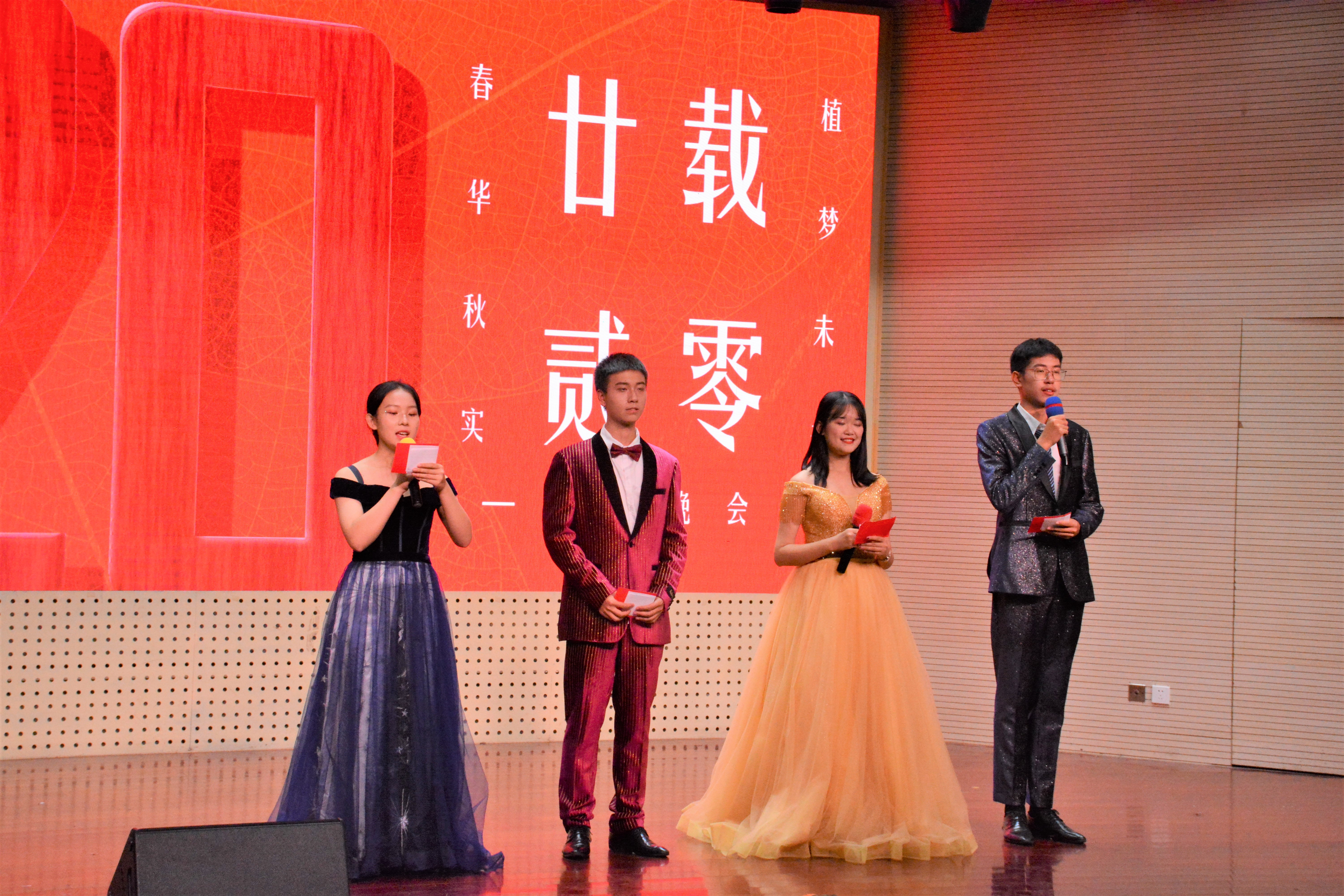 党委书记邵刚、党委副书记吴智丹、203班主任张峰、204班主任宋修仕,本科生辅导员李艳丹、封筱,研究生辅导员罗舜文出席晚会,何煜堃、易劭峰、王舒桐、潘俊衡担任晚会主持人。