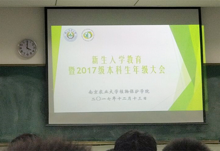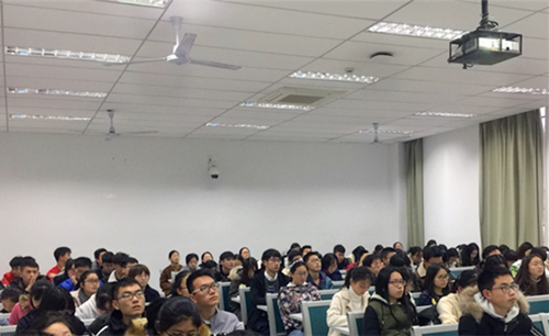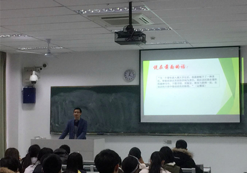 于主楼201召开17级本科生年级大会,院党委副书记黄绍华、本科生辅导员汪越以及17级全体本科生到场参加。