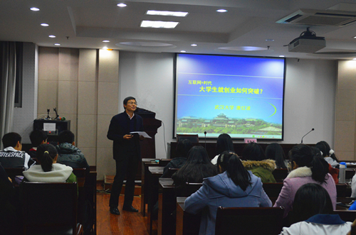 于理科楼C303举行了创新创业教育讲座。本次讲座邀请到武汉大学的唐红波老师,为在座的同学就“‘互联网+’时代大学生就创业如何突破”的问题分享了自己的见解与经历。