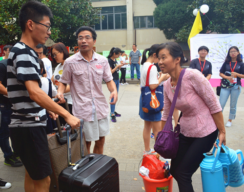 早上七点半,辅导员以及学生会的同学们就已经来到迎新场地进行布置,半个小时所有迎新队伍便已全部到齐“严阵以待”。他们肩负不一样的任务:主楼门口的同学高举院牌,接应满怀好奇与憧憬的新生;接待处的同学热情地回答新生及家长的问题;志愿者带领新生去往宿舍区;分配到行李房的同学,不辞辛劳地为新生检查分发被褥…校园的每一处都洋溢着开学的喜悦,热闹非凡。