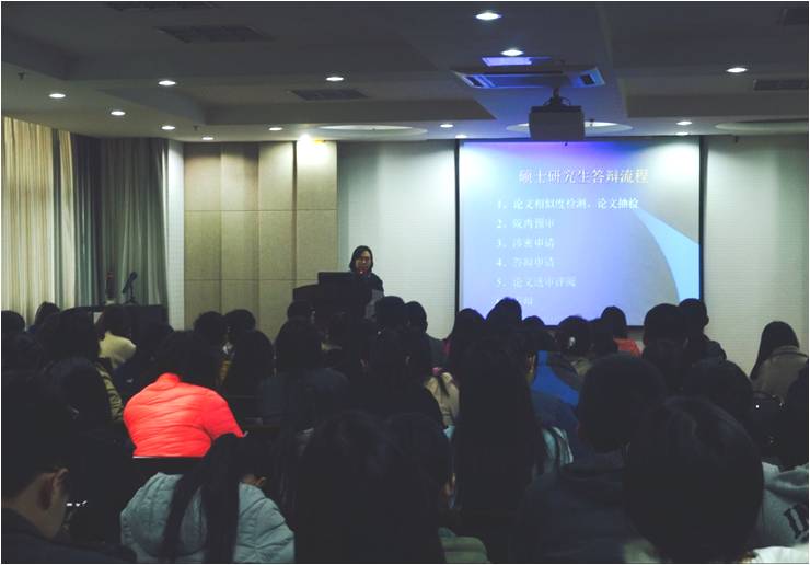 在理科楼C303报告厅召开2016届毕业研究生答辩及就业离校说明会。院研究生教学秘书岳丽娜、研究生辅导员吴智丹出席此次会议,全体2016届毕业研究生参加会议。