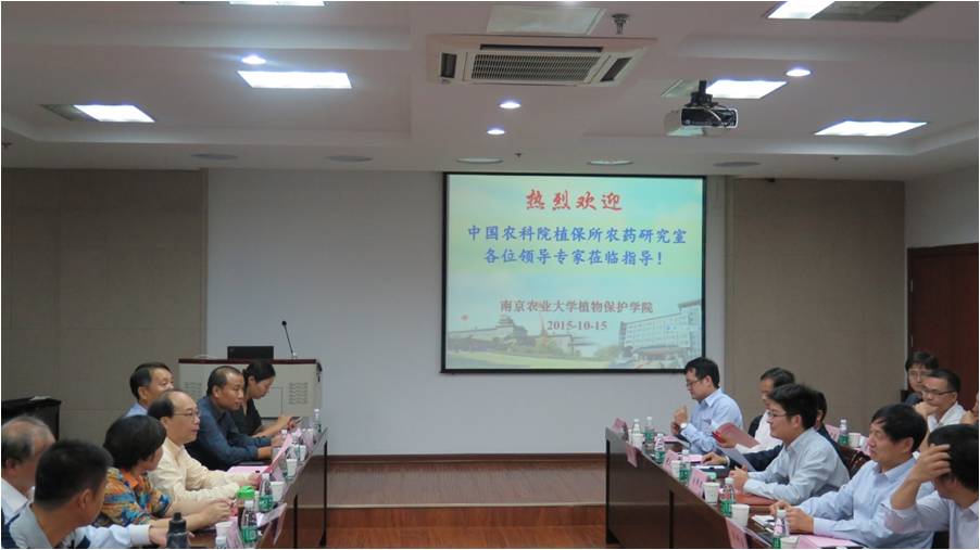 农药学科点负责人周明国教授和中国农科院植保所办公室主任袁会珠研究员分别做了“杀菌剂协同减量使用——理论与实践探讨”和“农药减量形势下的应用技术创新”的学术报告,对当前“两减”形势下的农药减量基础理论和关键技术进行了讨论。随后,双方在学科建设、项目申报、科研合作、学术交流、人才培养等方面开展了深入交流和探讨,一致认为建立双方合作关系和建立交流平台,可以优势互补,协同创新,推动我国农药学科的发展。