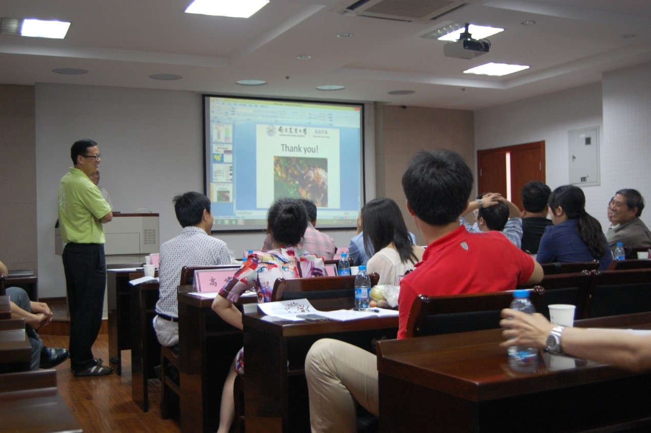 和中国农大植保教学科研人员,要紧紧围绕国家需求,相互协作、共同发展。沈杰教授介绍了中国农业大学昆虫学系主要研究方向和人员,对南农大昆虫系为成功举办本次交流会的组织和安排表示感谢。