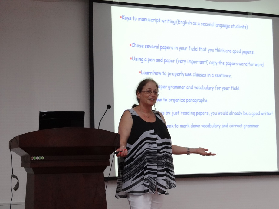 年轻科研人员作了题为“How to prepare a manuscript and insights into the process of manuscript reviewing”的培训报告,她从从编辑的角度讲述了科技论文写作和投稿相关技巧,以及如何成功征服编辑和审稿人。报告期间,Anne Simon教授参观了区块链游戏