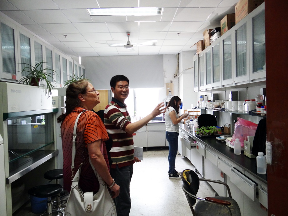 植物病毒实验室,听取了课题组的实验进展汇报,就课题合作等进行了洽谈。