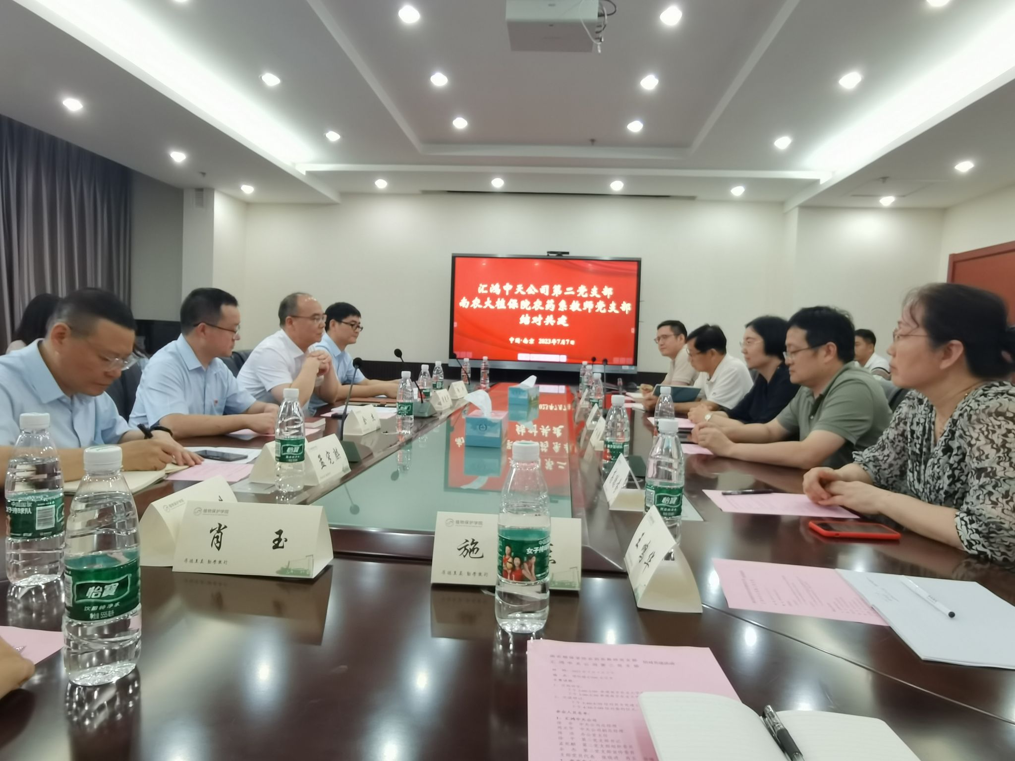 的基本情况。高聪芬从宣传师生有力、凝聚师生有力、服务师生有力等方面介绍了农药系教师支部党建工作的主要特色和成果。周光华介绍了汇鸿中天公司的历史沿革、组织架构、生产经营情况以及自主题教育开展以来的党建工作情况。他表示,进行支部共建,有利于双方更好地加深产学研的沟通和交流,希望以此次共建为契机,促进校企多层次的合作,利用各自的优势共谋创新发展。周明国教授、王鸣华教授建议以农药产业需求为导向,双方在成果转化、人才输出、专业授课等方面加强合作。