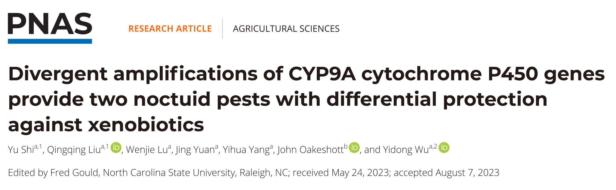 杨亦桦教授和澳大利亚麦考瑞大学John Oakeshott教授参与了此项研究。该研究得到了国家重点研发计划项目(2022YFD1400901)的资助。