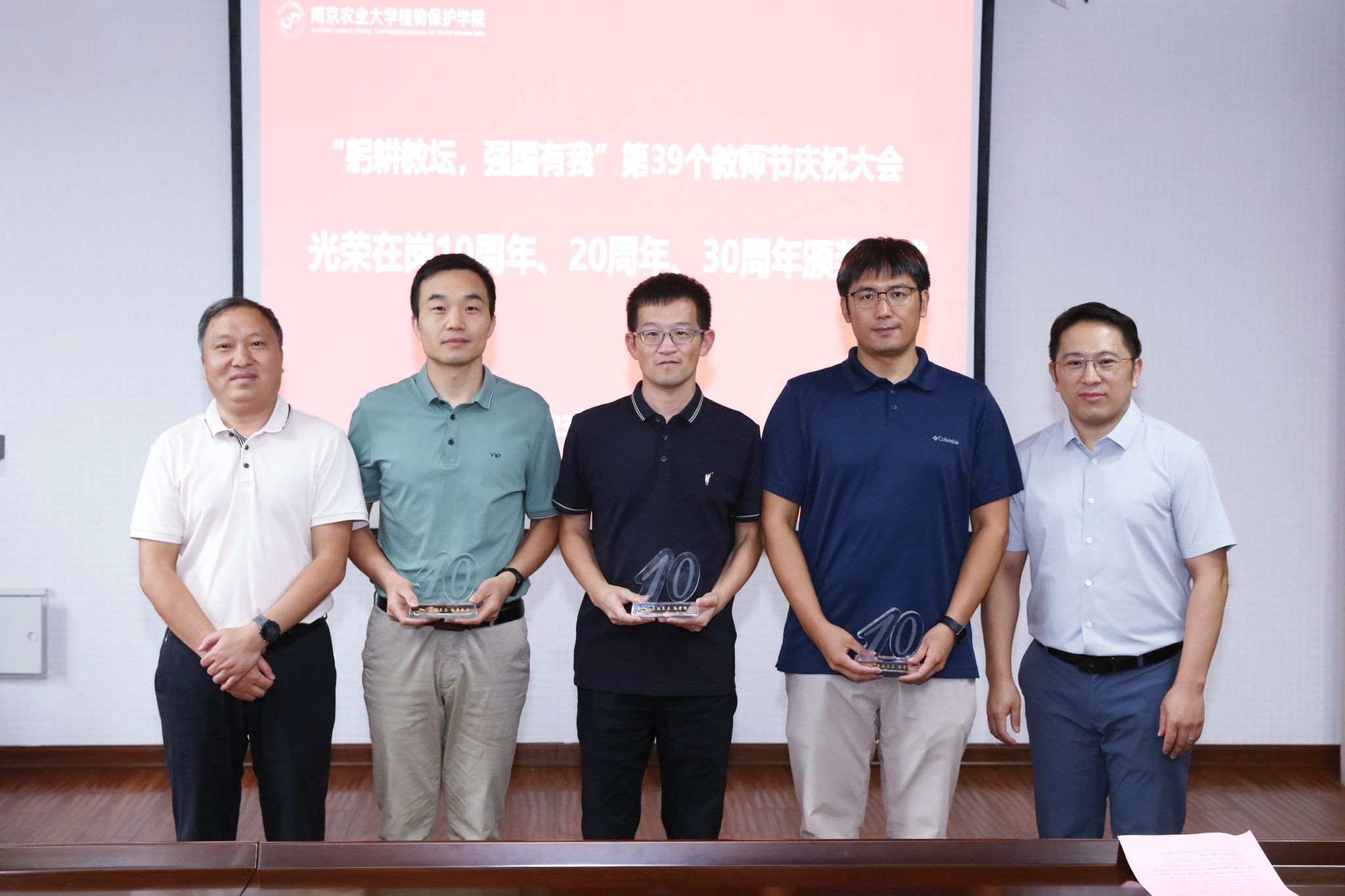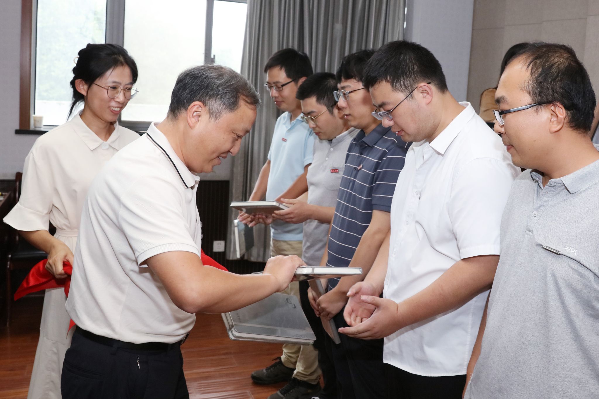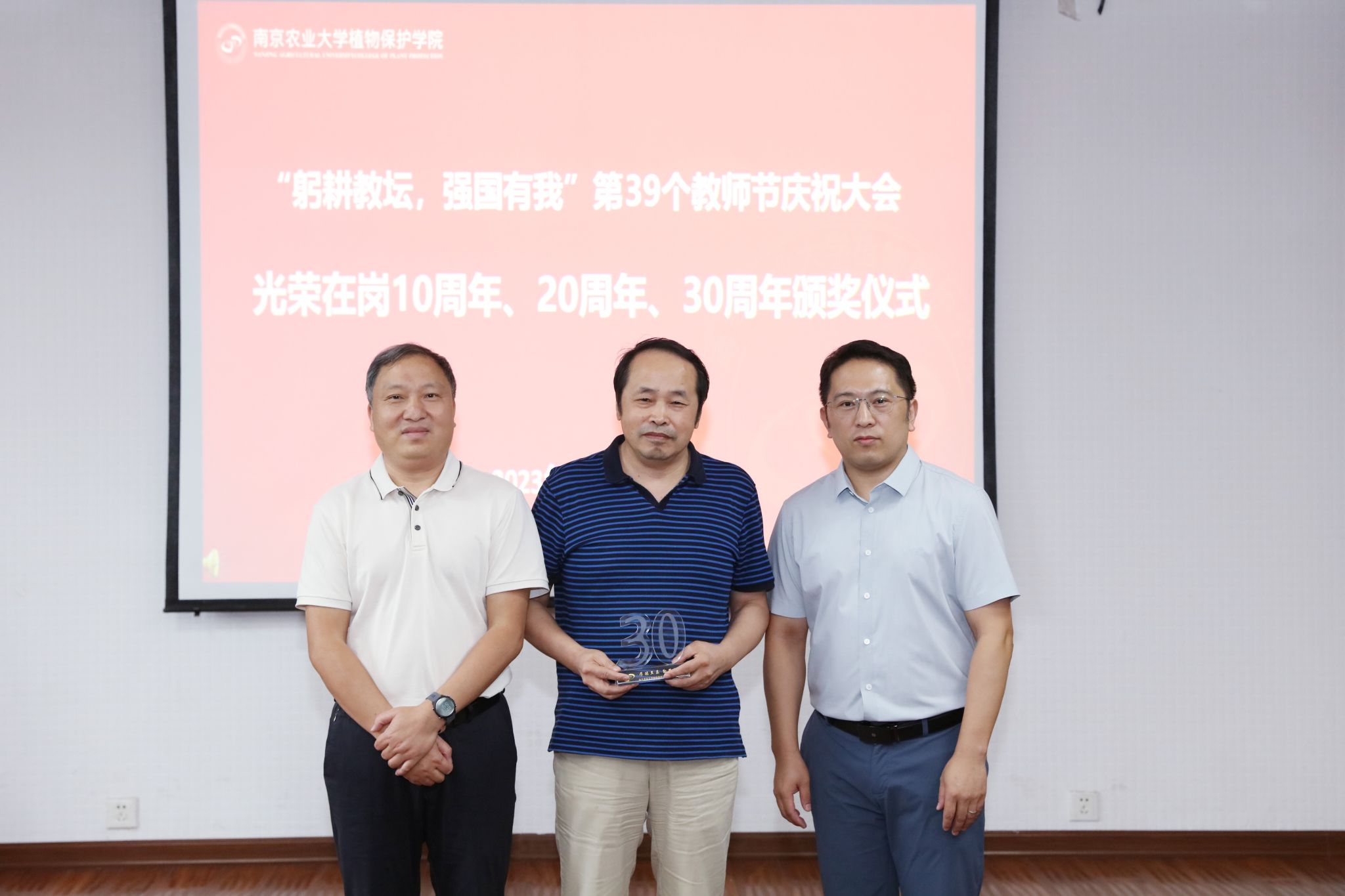 院长张正光为光荣在岗10周年的王兴亮、叶文武、吴顺凡等老师,在岗20周年的邵刚老师,在岗30周年的李国清老师颁发了纪念奖杯,5位老师分享工作感悟。