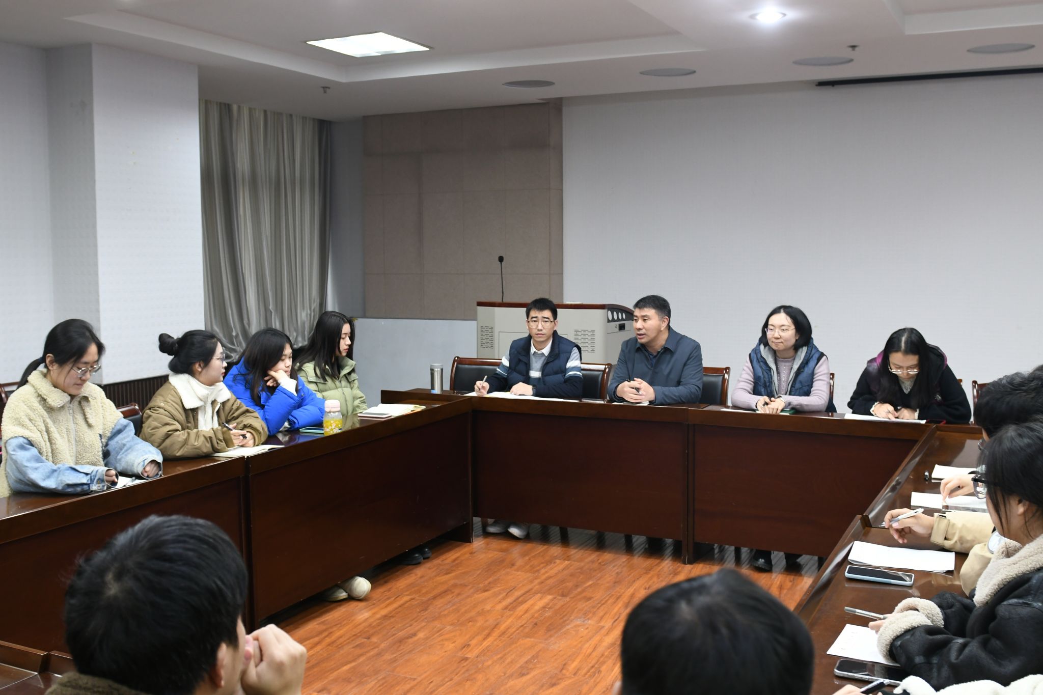 党委副书记(主持工作)许承保,党委副书记吴智丹,研究生教学秘书岳丽娜,辅导员李艳丹、罗舜文、夏健鑫,以及三十多位本科生、研究生新生代表参与座谈。