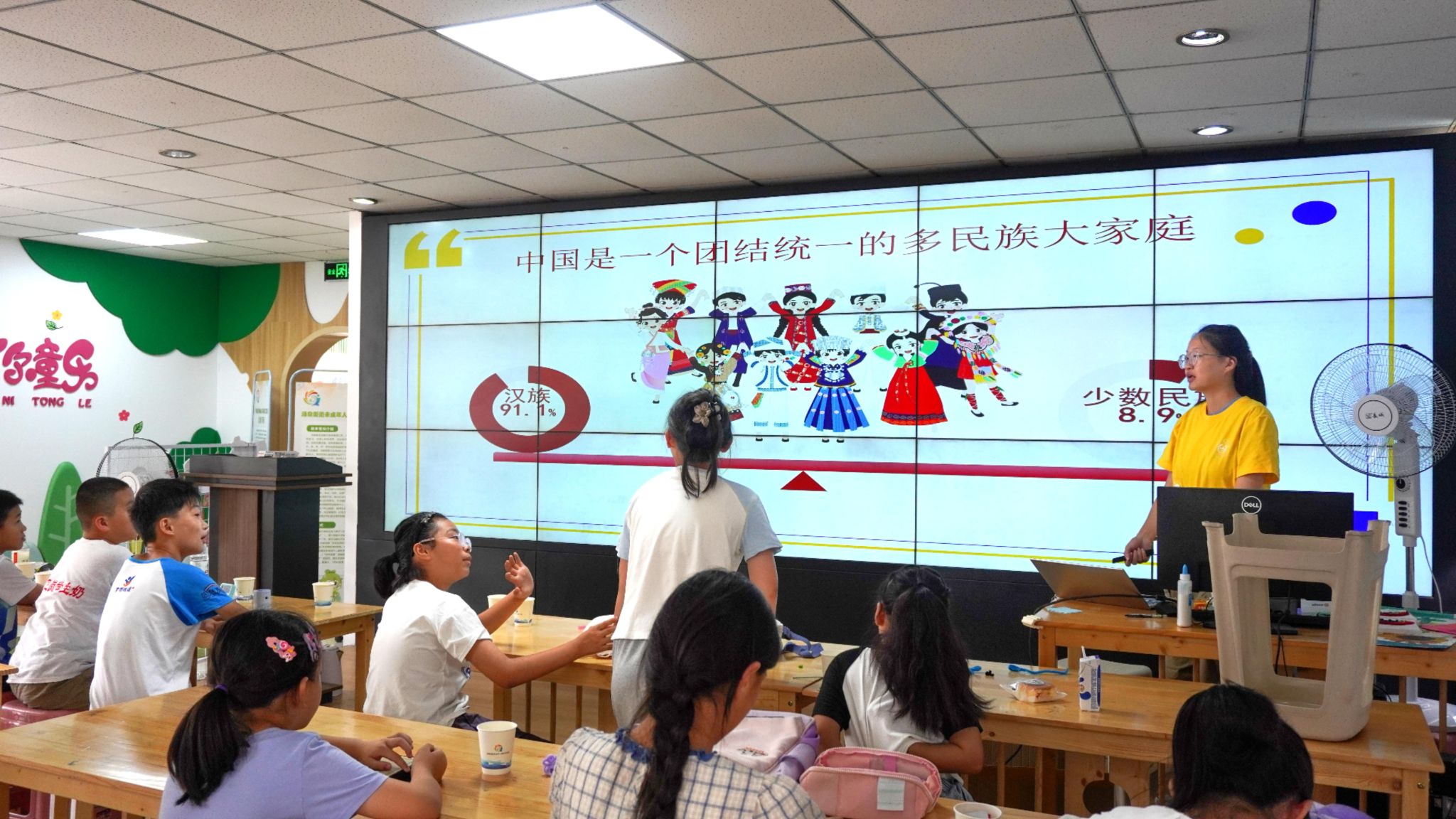 宣讲期间,实践团围绕苗族、藏族、彝族、蒙古族、维吾尔族等多个民族,从分布、服饰、节庆、声乐等角度系统讲解,结合互动游戏,和孩子们一起走进多民族文化的文明世界,引导他们增强文化认同感和民族自豪感。随后,实践团开展问卷调研,了解社区儿童在语言融合、学习适应、情感归属等方面的基本情况,初步结果显示社区儿童整体适应良好、融合积极。