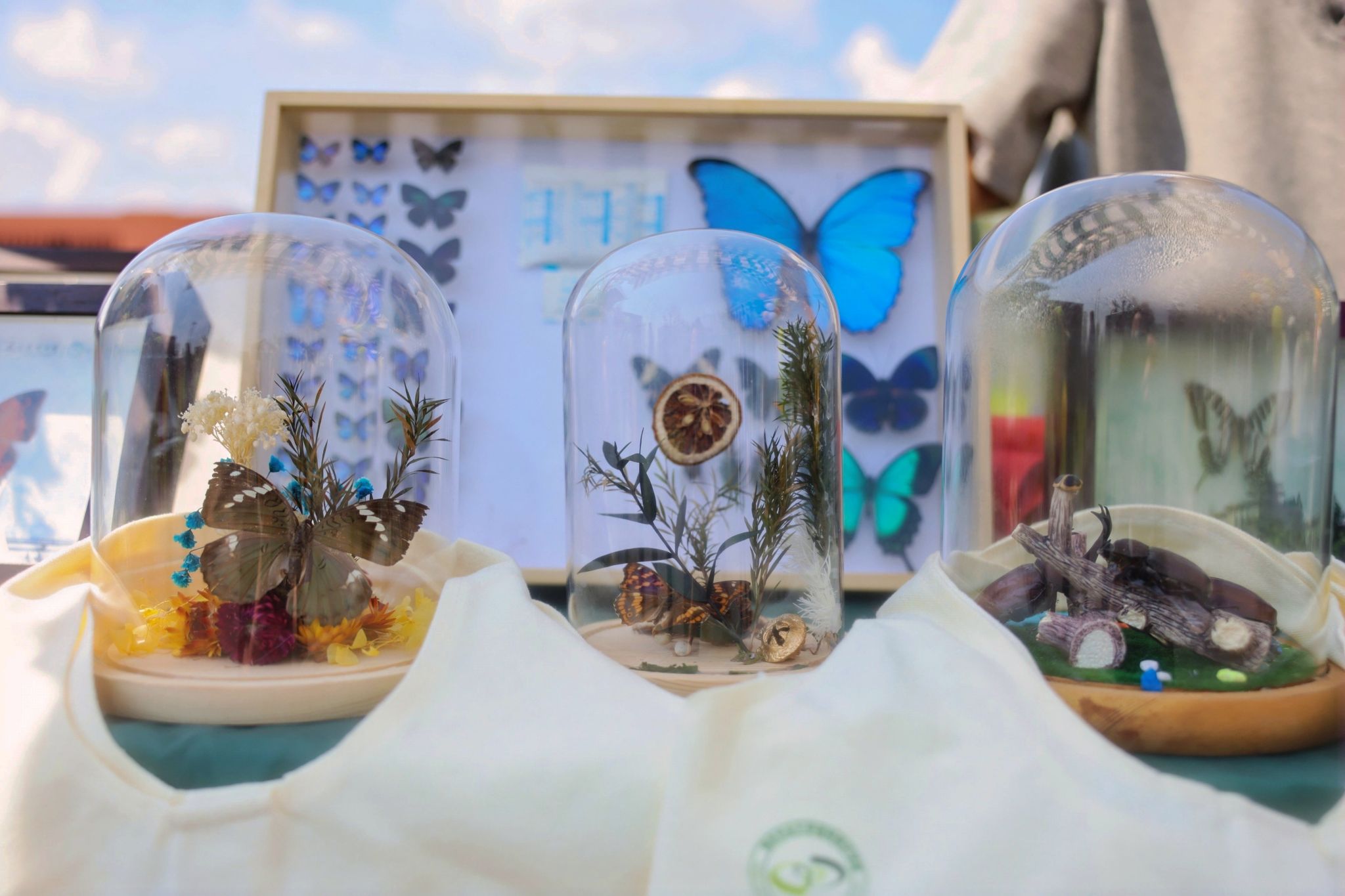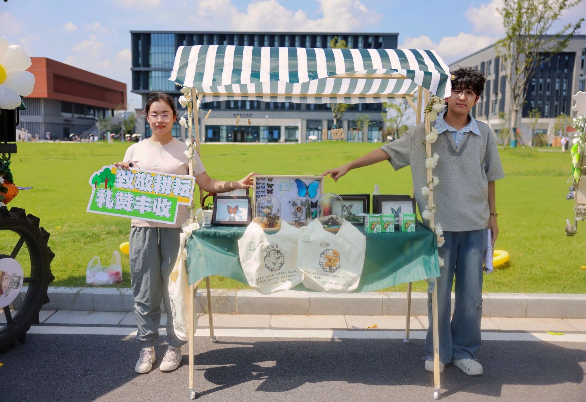 的主题展示摊位,洋溢着“致敬耕耘,礼赞丰收”的氛围。现场派发的文创产品、昆虫标本展示及趣味打卡活动也极大提升了大家的参与热情,奖品早早兑换一空,反响热烈。