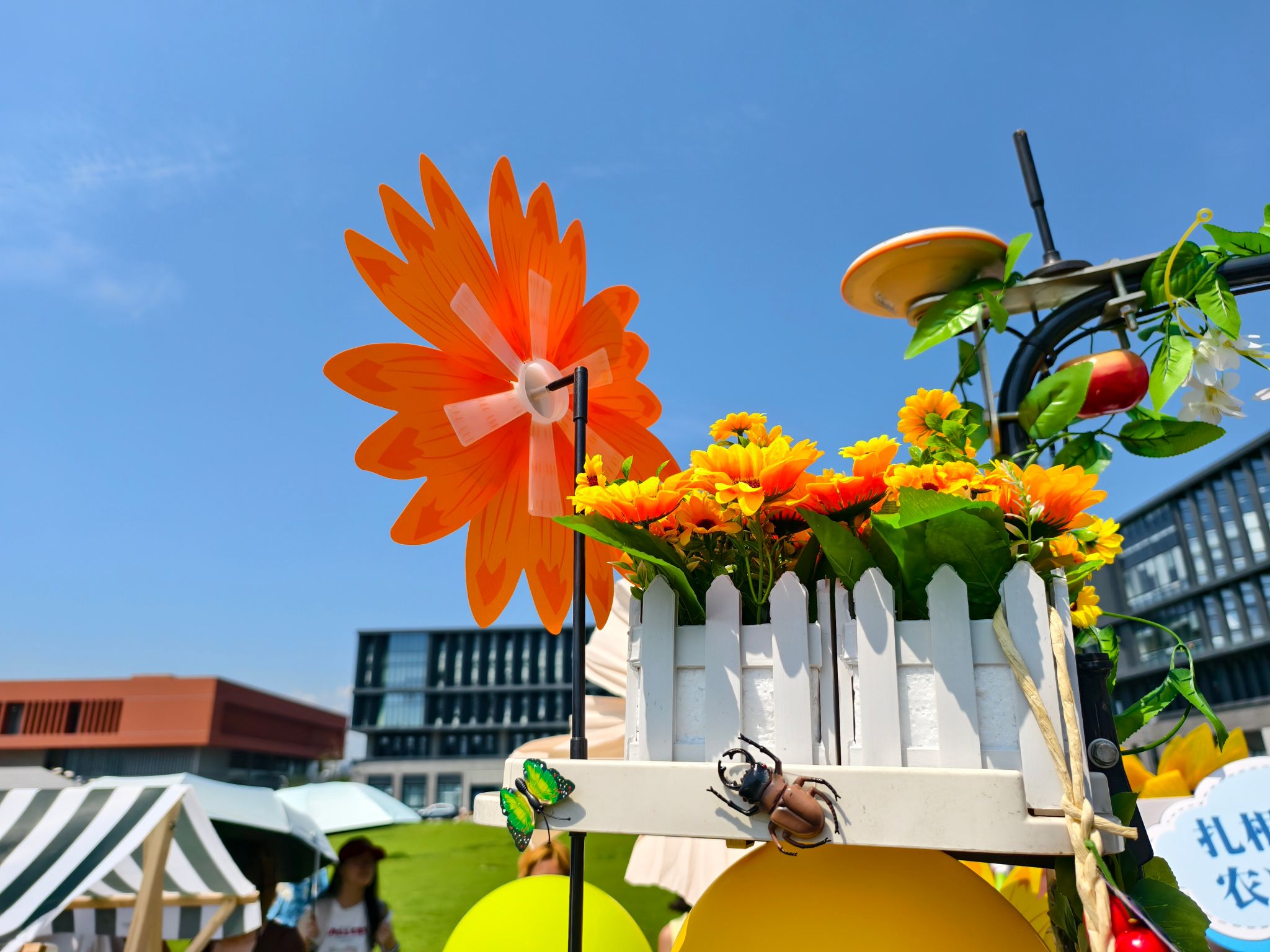 花车以“生态保丰”为主题,将“希望”与“生态多样性”融入设计之中,形象展现出植物保护学科在守护粮食安全、促进农业可持续发展中的重要作用。车头向日葵风车追随阳光,象征着活力与丰收的希望;车尾各类果实累累,喻示在植保技术的护航下农业生产的丰硕成果;车身点缀的昆虫与蝴蝶,则生动体现了生态平衡与生物多样性保护的理念。整座花车不仅视觉层次丰富,更深刻传递了“尊重自然、和谐共生”的生态价值观。