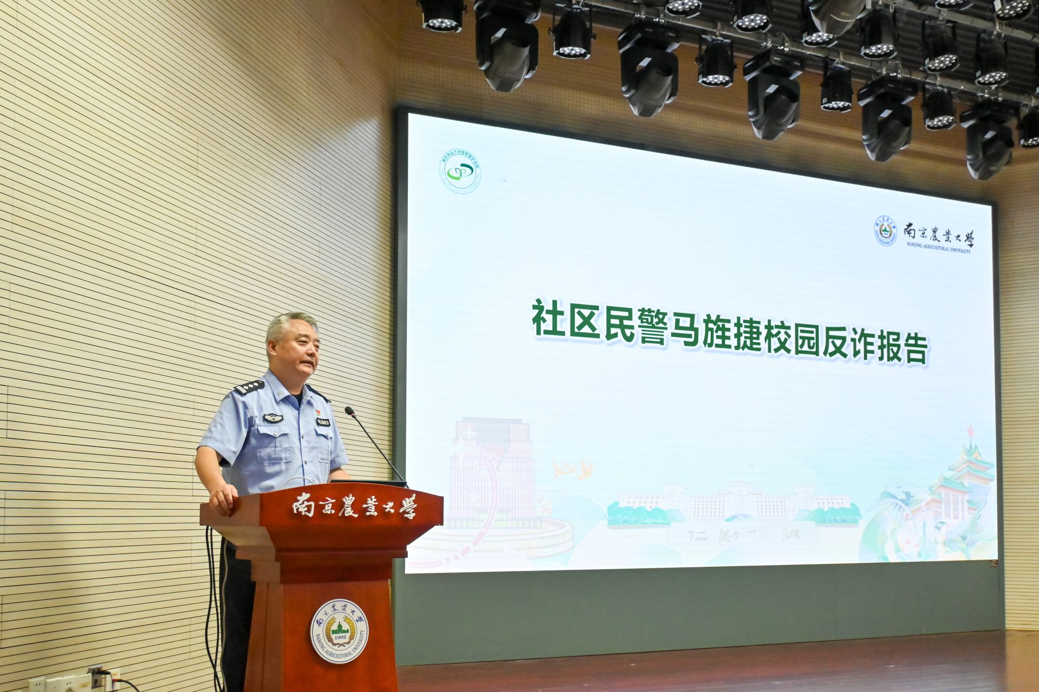 还邀请了社区民警马旌捷作反诈宣讲。他从衣食住行的生活各个方面,结合近期在校园内发生的真实案例,生动地为新生敲响反诈警钟,提醒同学们谨防电信诈骗,共同守护校园安全。
