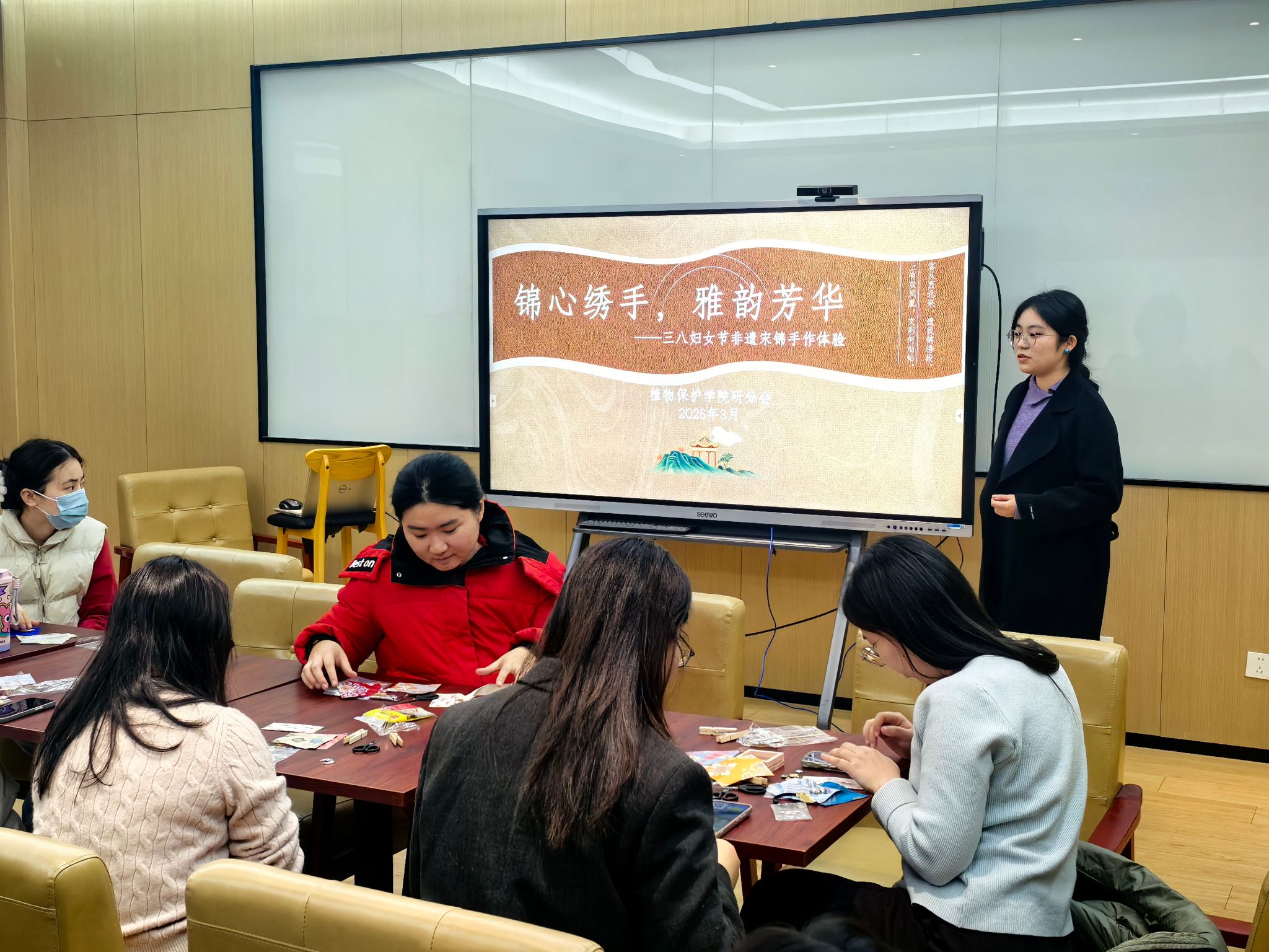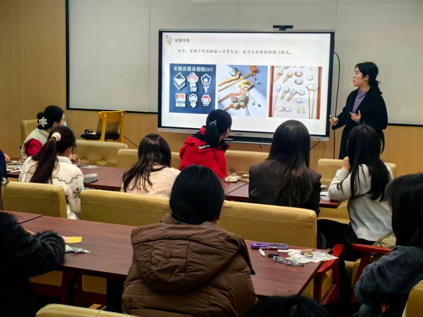 研分会举办的“锦心绣手,雅韵芳华”非遗宋锦手作体验活动在滨江校区17号楼206温情启幕,26名女性师生共赴这场非遗之约,在指尖感受千年织锦的典雅魅力。