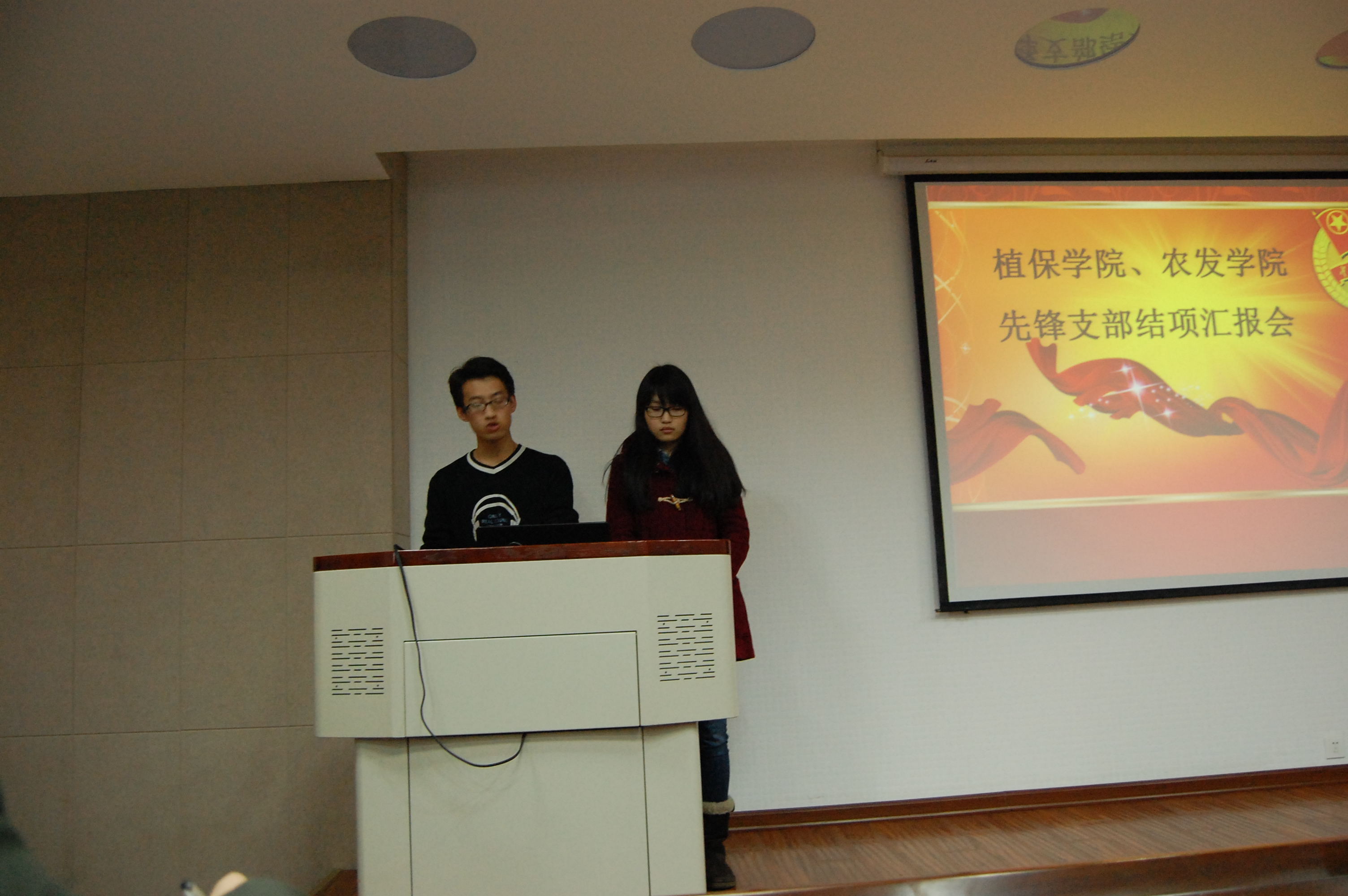 王李锋简要介绍会议流程后,各先锋支部团支书依次上台汇报上学年内支部机制建设、学风建设、文化建设和特色活动的开展情况及活动成果。各支部通过建设和发展各类网络平台,加强班级的对外宣传;通过开展丰富多彩的主题活动,加强内部交流,并形成一种相交而各立,相容而共鸣的有生命的文化底蕴;更通过各类切合支部实际的特色活动,体现支部不一样的精彩。其中,植保121班结合班级特色开展的大学生职业生涯规划活动将策划书展示、简历制作及模拟招聘会融合起来,循序渐进,让班级同学有机会切身接触当代就业的客观环境,对他们今后的就业起了很好的指导作用,让人印象深刻。会后,评委根据各支部展示进行评分并点评。