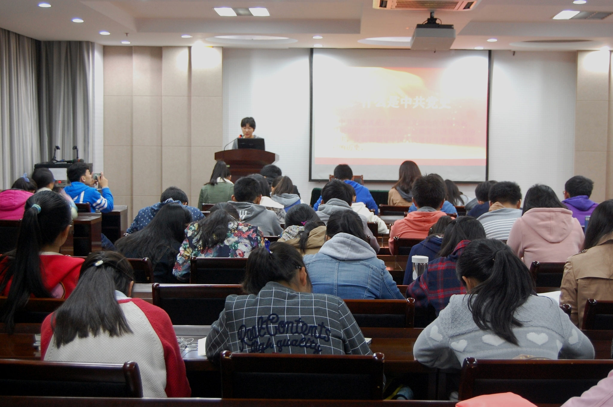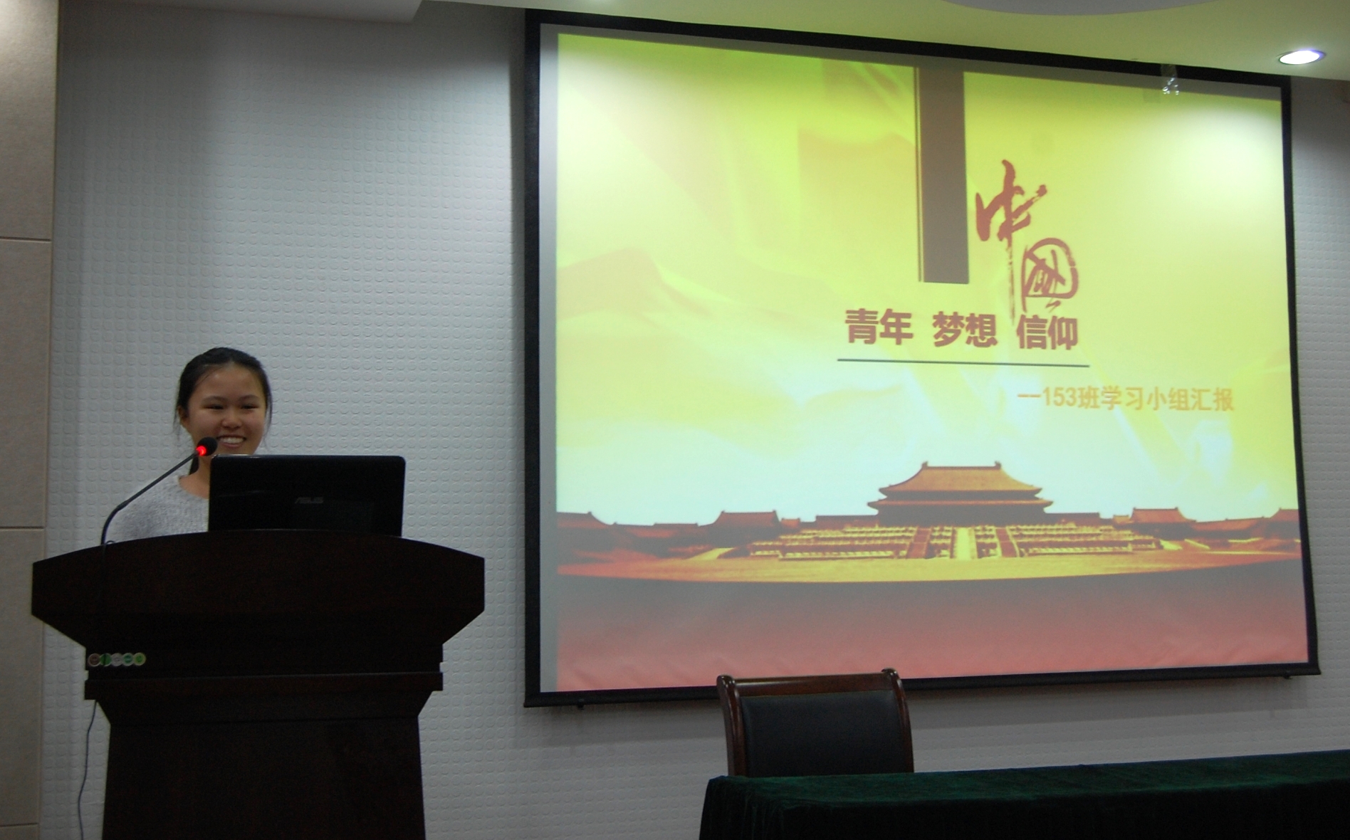 方宝耕作为第一组代表上台,并围绕党的进程和党章进行相关介绍。随后其他各组代表依次进行汇报,其中第五组郭奇以故事的形式讲述着共产党艰辛的建党道路。从南昌起义打响第一枪到最后井冈山会师,这些印在那条泥泞道路上的一个个脚印,现在却在历史的长河中褶褶生辉,见证着星星之火可以燎原的历史。第七组张颖则从党的一大、二大阐述党史,概述党从三大到十八大的历程,由此充分展示出党的指导思想随社会历史的需要而不断改变的事实,同时表达了中国共产党是一个与时俱进的领导群体。