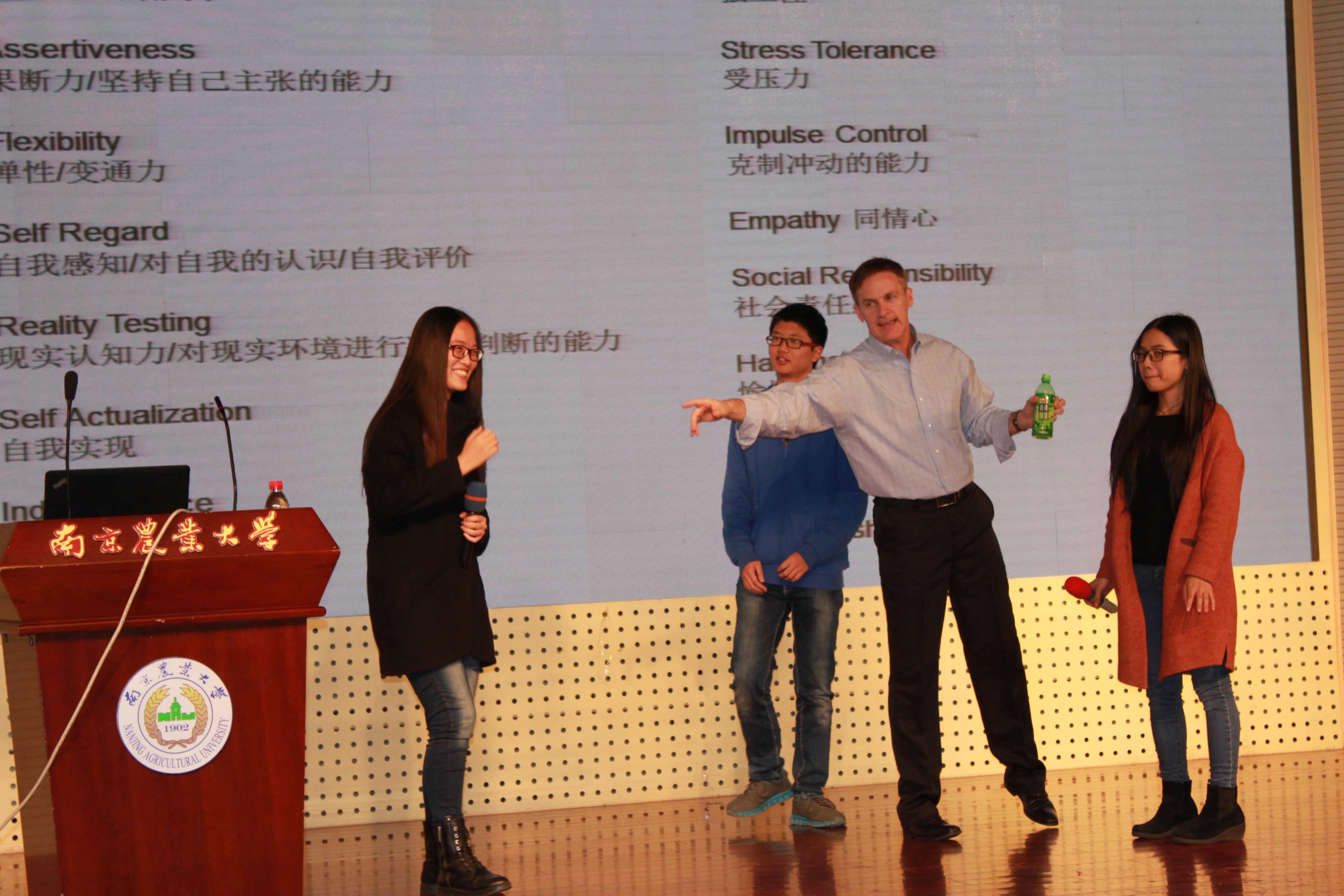 讲座接近尾声,Mr Guy Armstrong提出沟通是消除一切隔阂与误解的不二法门。针对中国教育体制可使孩子的智力潜能得到充分挖掘这一情况,Mr Guy Armstrong指出此事背后不重视对孩子情商管理能力培养的缺陷。最后,他希望自己所热爱的事业可以帮助到每个还在成长的青少年,让他们离成功更近一步。