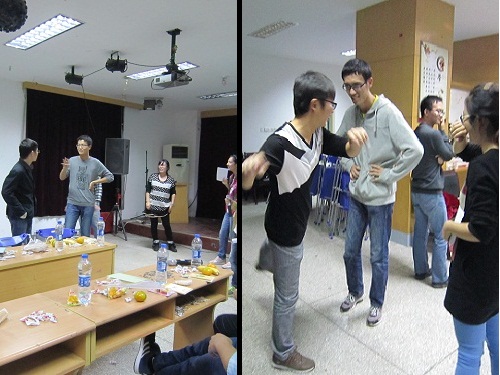 会场被特意布置成面对面的桌子,晚上八点班级活动正式拉开帷幕。自我介绍环节,采取了相对传统的破冰游戏“姓名接力”,排在最后的同学需要记忆并说出班级所有同学的名字,一圈下来,大家对彼此有了初步的了解,准确记住前边所有同学姓名的同学获得了奖励。接下来的数字游戏等游戏使大家真正热络起来,输了的同学被要求唱歌或跳舞,这不仅是小小的惩罚也是展示自己让大家了解自己的机会,彼此的距离迅速拉近。接下来又进行了“比划猜词”游戏,游戏进行过程中大家加深了彼此的了解,气氛达到了顶峰。之后又进行了“谁是卧底”的游戏,同学们斗智斗勇,获胜的同学得到了相应的奖品,当然输家逃避不了小小的惩罚。同时大家相互交流开学以来的学习科研生活,打破了实验室之间的生疏感,加深了友谊,扩大了朋友圈。