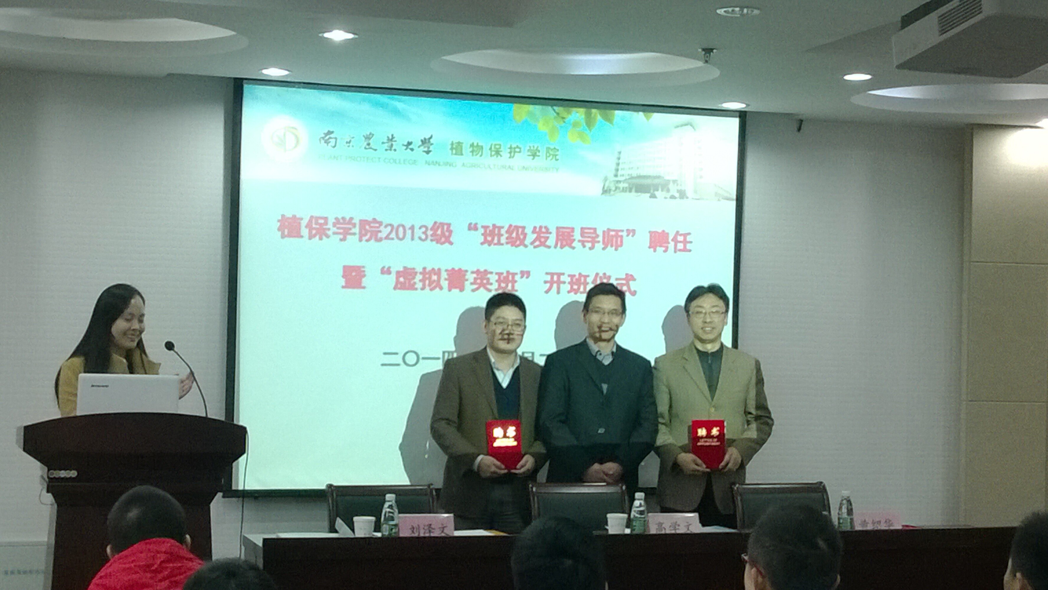 聘请党委书记吴益东教授担任植保131班导师,副院长高学文教授担任植保132班导师,副院长刘泽文教授担任植保133班导师,院长王源超教授担任植保134班导师。刘泽文代表班级发展导师致辞,他表示即使老师们工作再忙碌,也非常愿意与学生交流,感受年轻的心态与积极的思想,并在学术及人生道路选择方面给予学生指导。