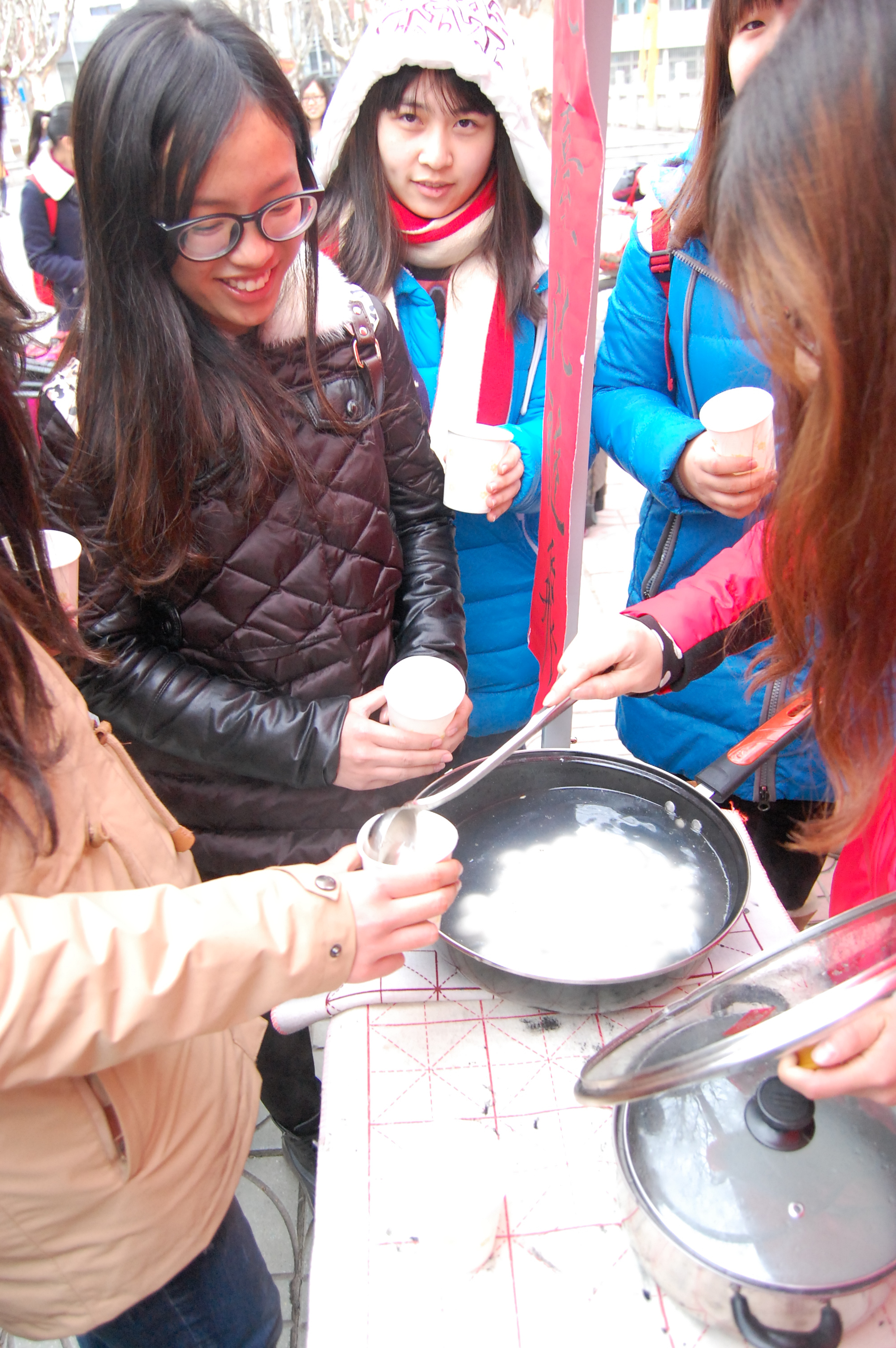 活动现场,同学们拿起毛笔,在大红的纸上写下“元宵”,体验中国文字和书法的艺术魅力;面对一张张由书法协会同学亲手写下的字谜,苦思幂想,感受传统字谜的文化内涵;在腾腾的热气中,看着翻滚的汤圆,品尝团圆的甜蜜滋味。