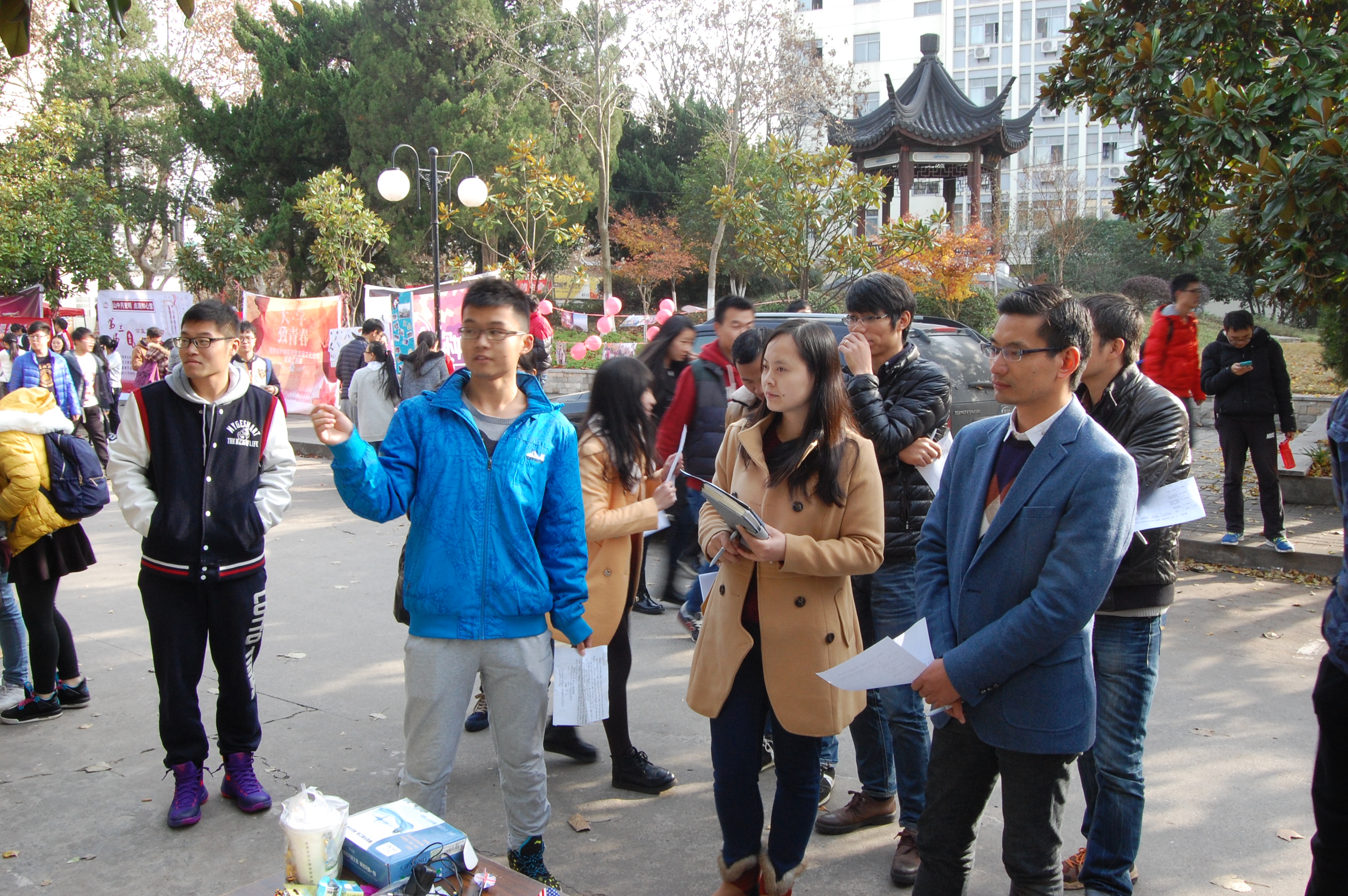 丰富的班团活动是青葱岁月的难忘回忆。本次活动的目的就在于将大学与青春的激情用丰富多彩的活动展现出来,用青春正能量记录大学四年的光影片段。每个班根据自己对大学的定义,开展独具特色的班级文化活动。植保154班以公益为主题,通过带领班级同学从身边小事做起践行微公益,“让文明行为成为习惯,让志愿服务成为时尚”。植保141班的“我与植物共成长”活动,充分体现植物保护专业特色。植保142班以运动为主题,将运动与文化、梦想相结合,并在现场为大家呈现精彩的武术表演。各班汇报的同时,也根据本版特色,开展了看图识植物、生物有奖竞猜、趣味抽奖等活动,吸引了来往路人。
