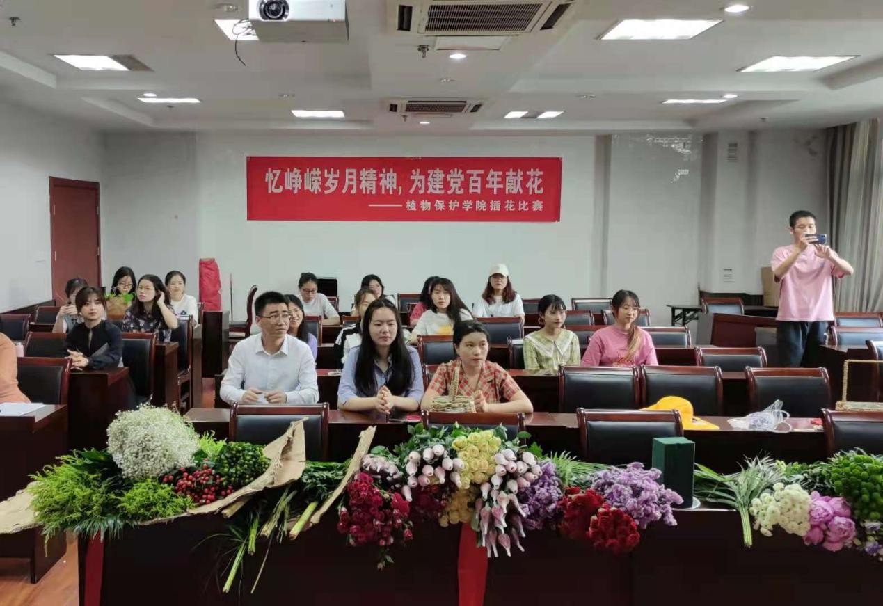 在理科楼C305举办了插花比赛,为建党100周年献礼。