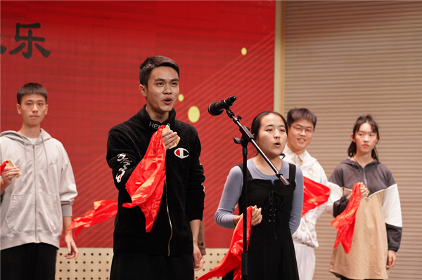 一段活力四射的开场舞后,晚会第一篇章“敬意竭诚”拉开帷幕。合唱团用轻松愉快的歌声和动感十足的舞蹈诠释了歌曲《New boy》,收获了观众的阵阵掌声。合唱团与器乐团联合带来的节目《南农喜来乐》将传统艺术与现代审美相结合,为大家带来了独特的视听体验。器乐团一曲《霍元甲》,锣鼓激昂,收获叫好连连。植保211班带来了诗朗诵《雪落在中国的土地上》,情绪饱满地传递着对祖国和人民的热爱。