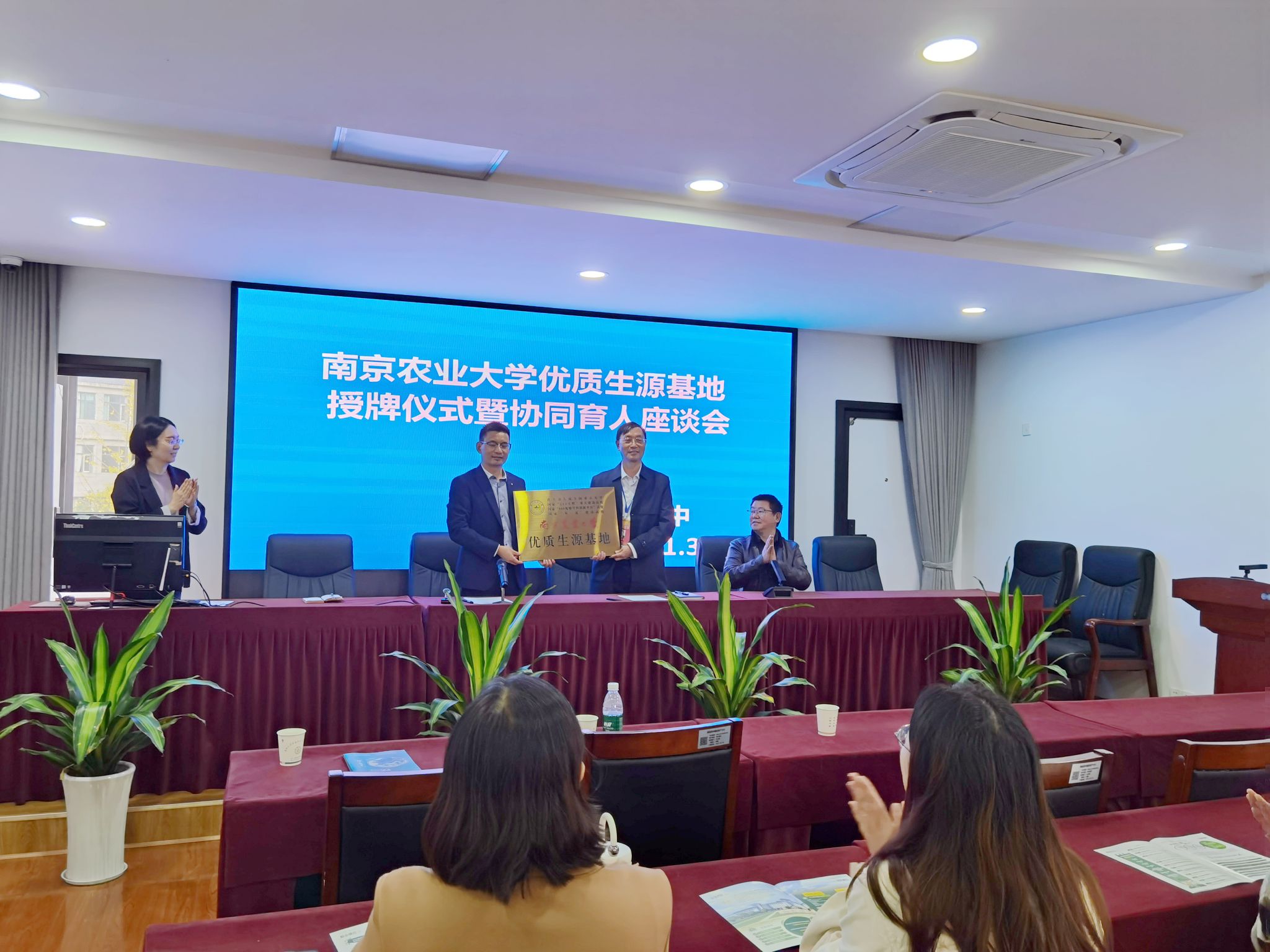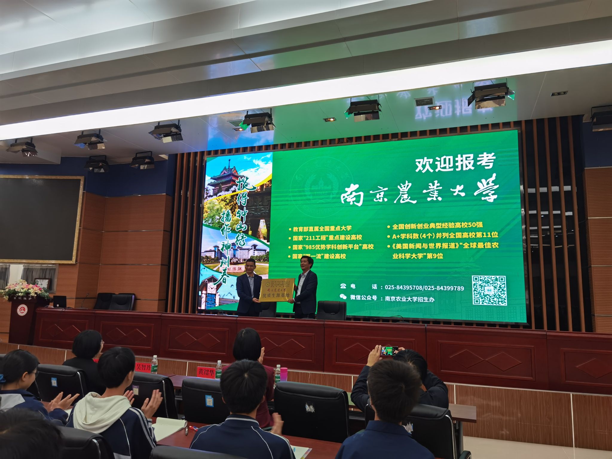 活动期间,招生组与两所中学的校领导和老师展开座谈交流,并进行了优质生源基地授牌仪式。