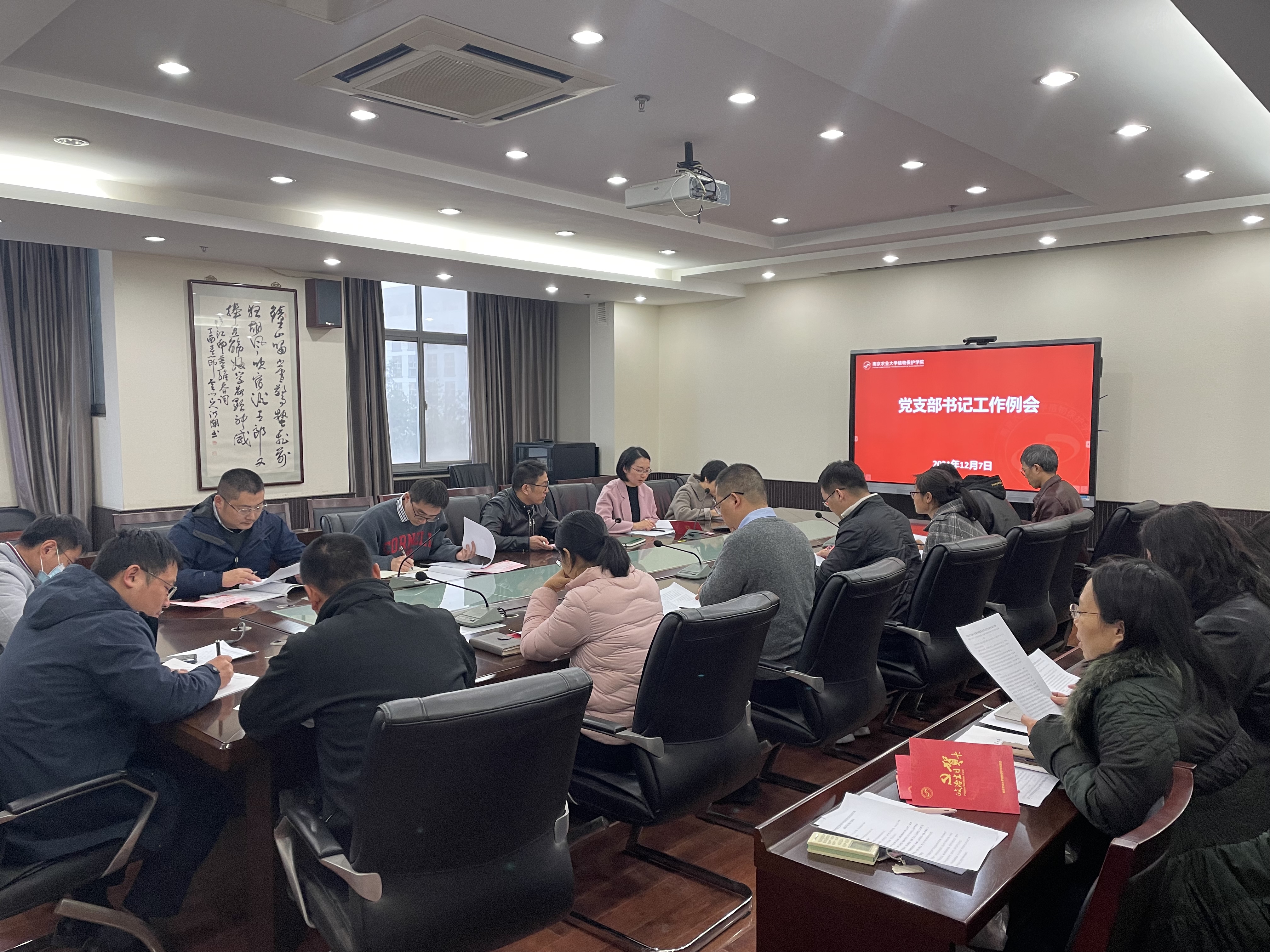 在理科楼C306召开12月份党支部书记工作例会暨基层党支部书记抓党建述职考核工作动员大会,集中学习党的十九届六中全会精神,研究部署近期党建工作。